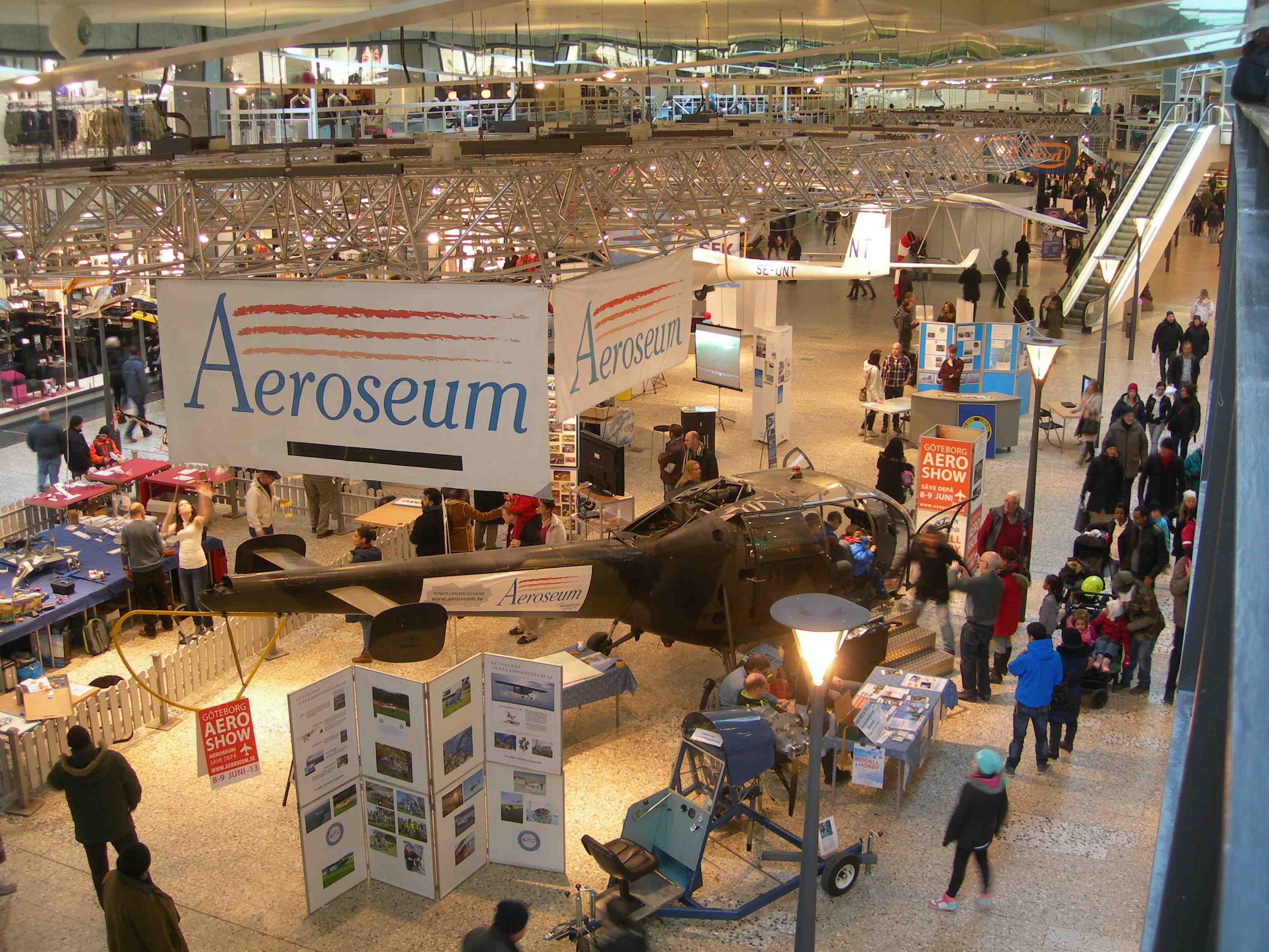 Liten utanpå – stor inuti. Sjusitsig Saab 95 De Luxe 1961 i sällskap med husvagn. Saab Car Museum på besök i Nordstan onsdag 15 maj 2013 kl 19:22.