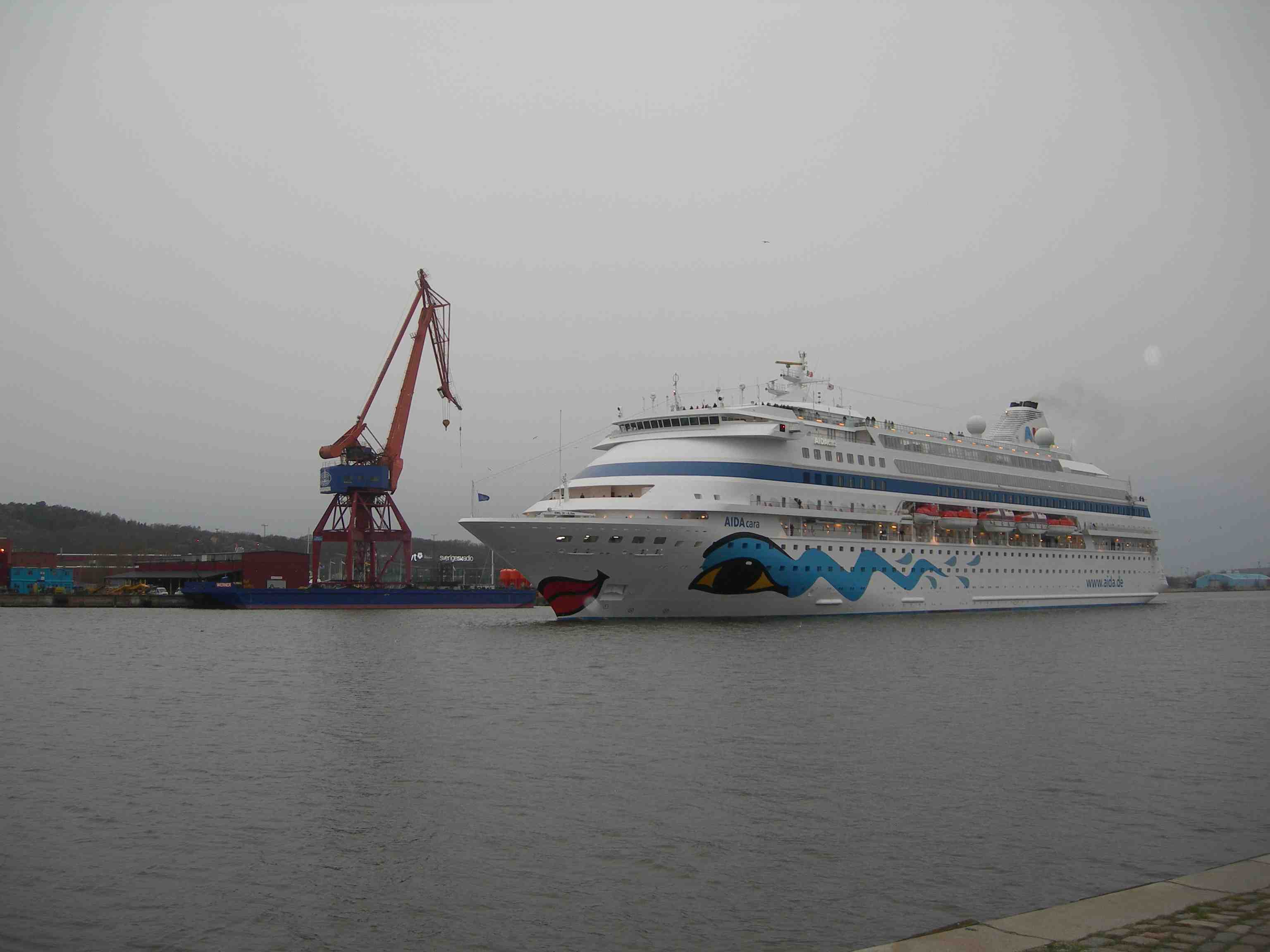 Stena Carisma, 8.631 BRT, AIDAcara, 38.531 BRT och Stena Jutlandica, 29.691 BRT. Stenpiren torsdag 25 april 2013 kl 20.01.