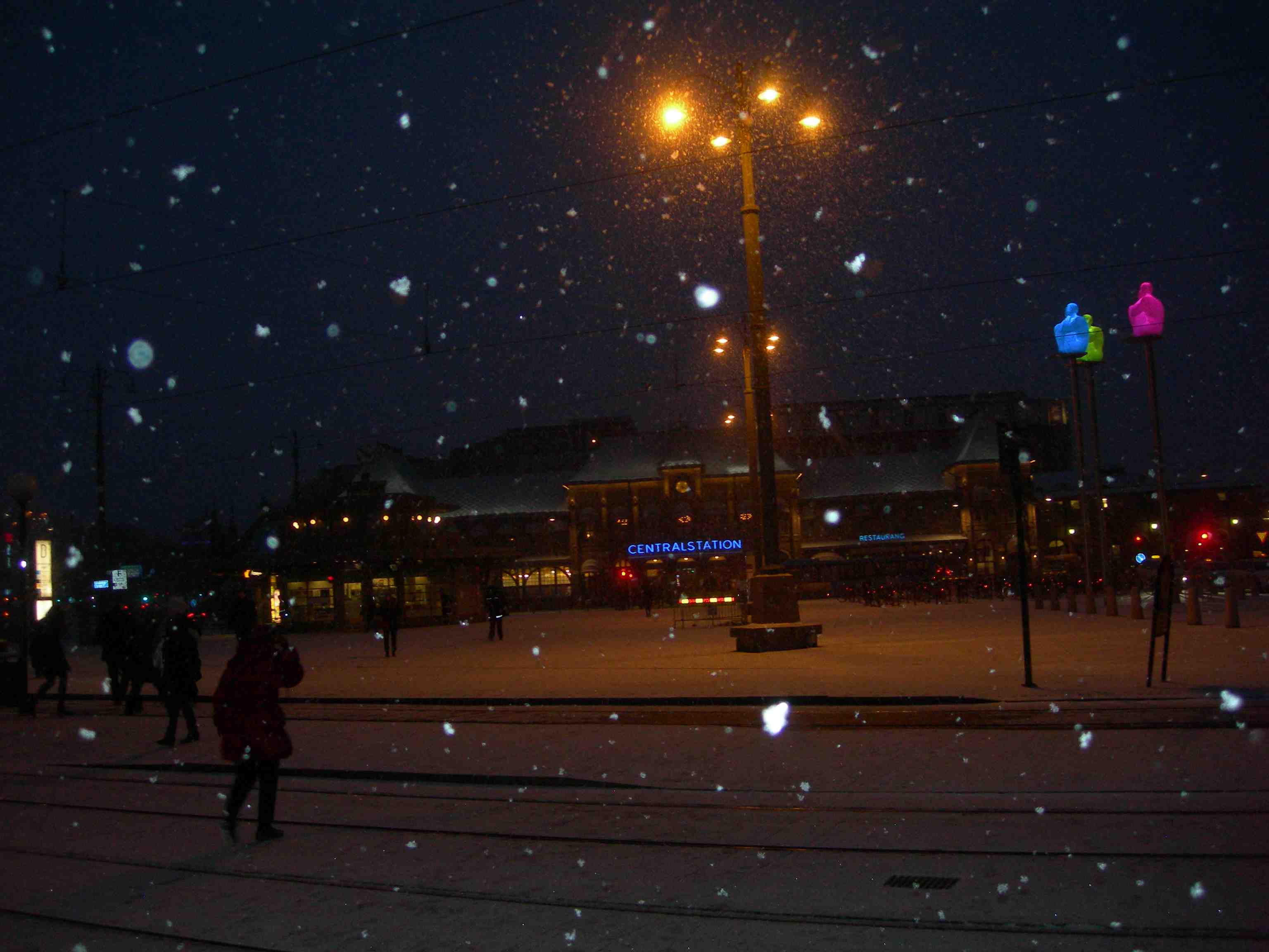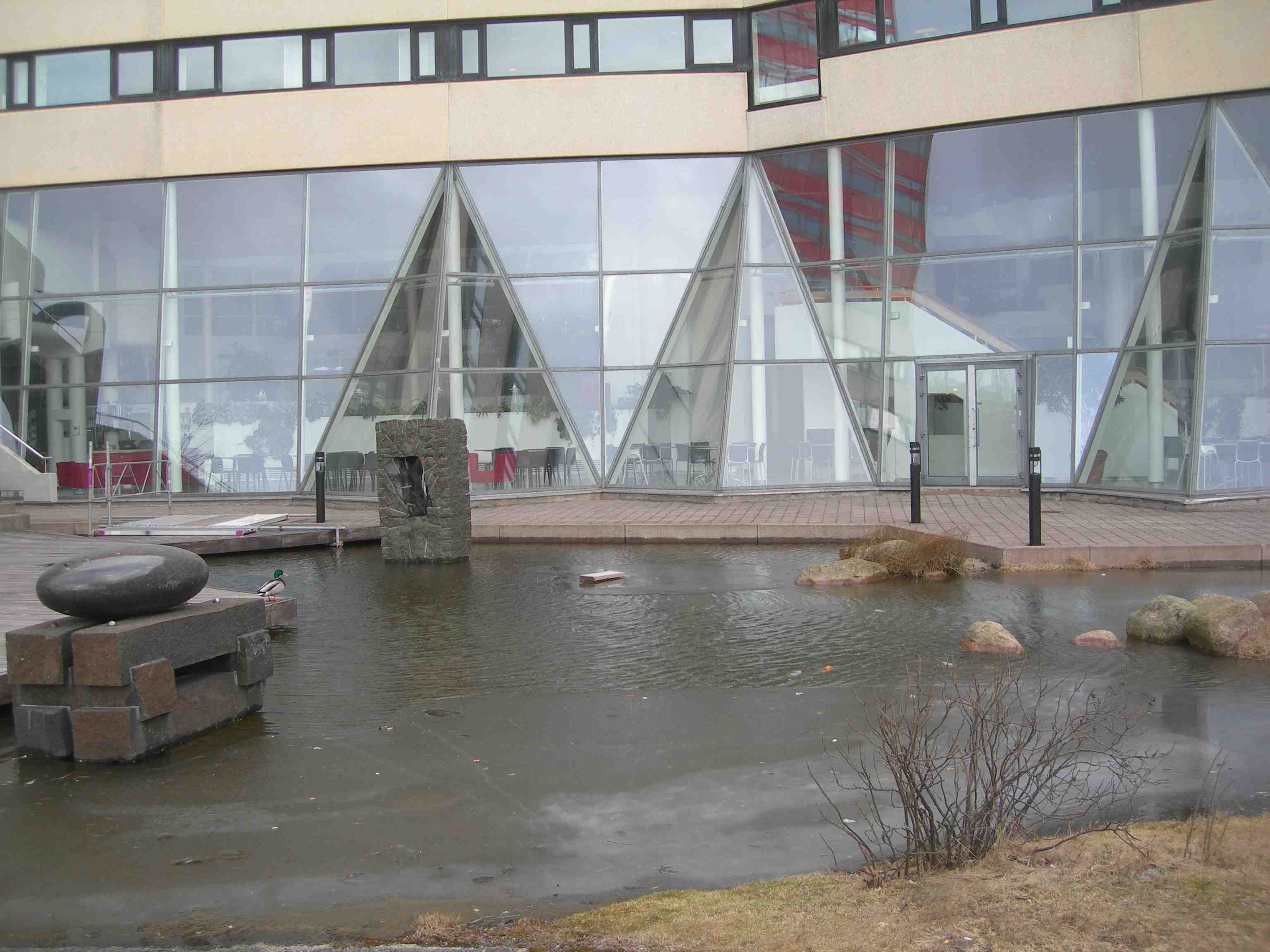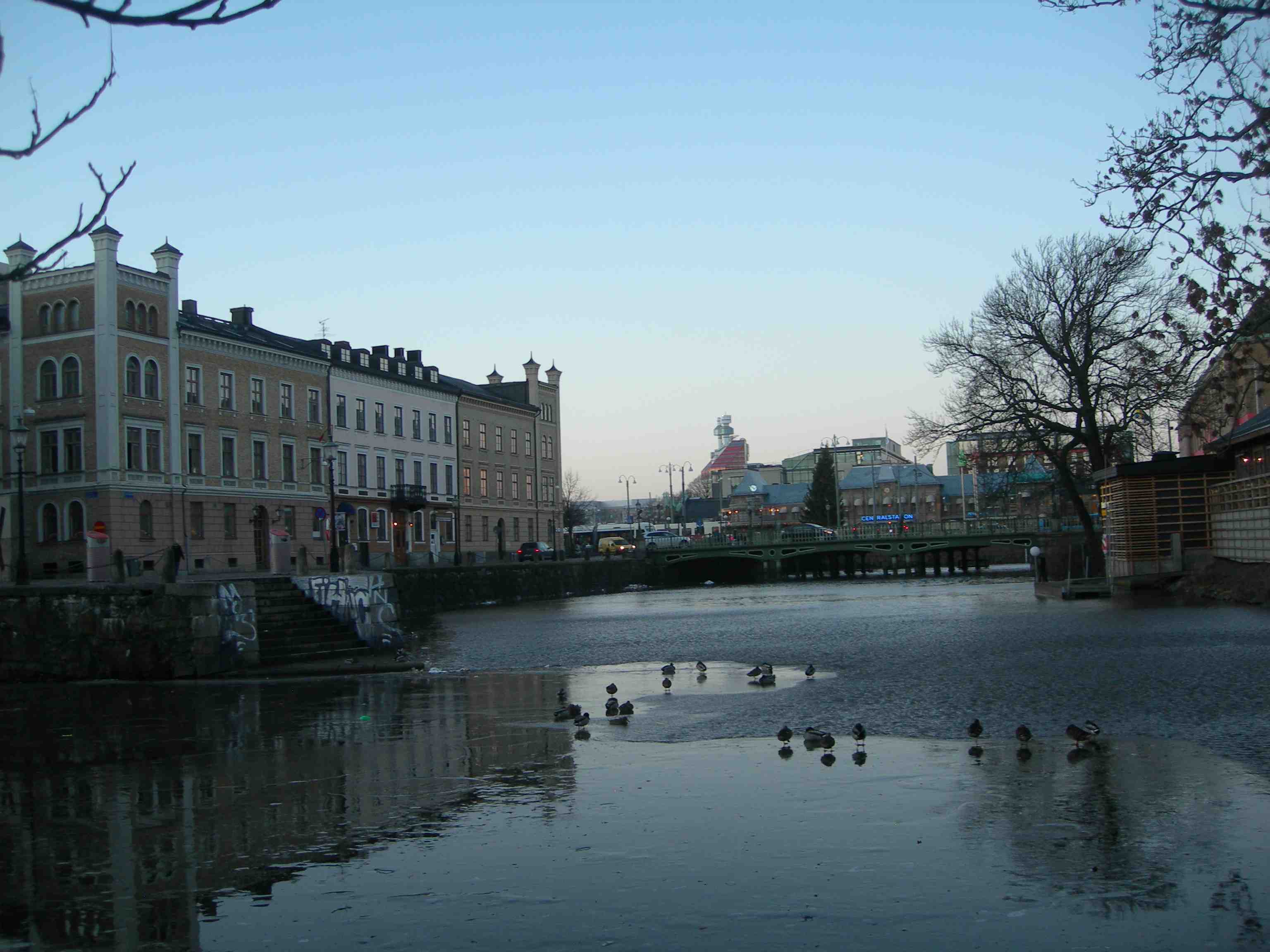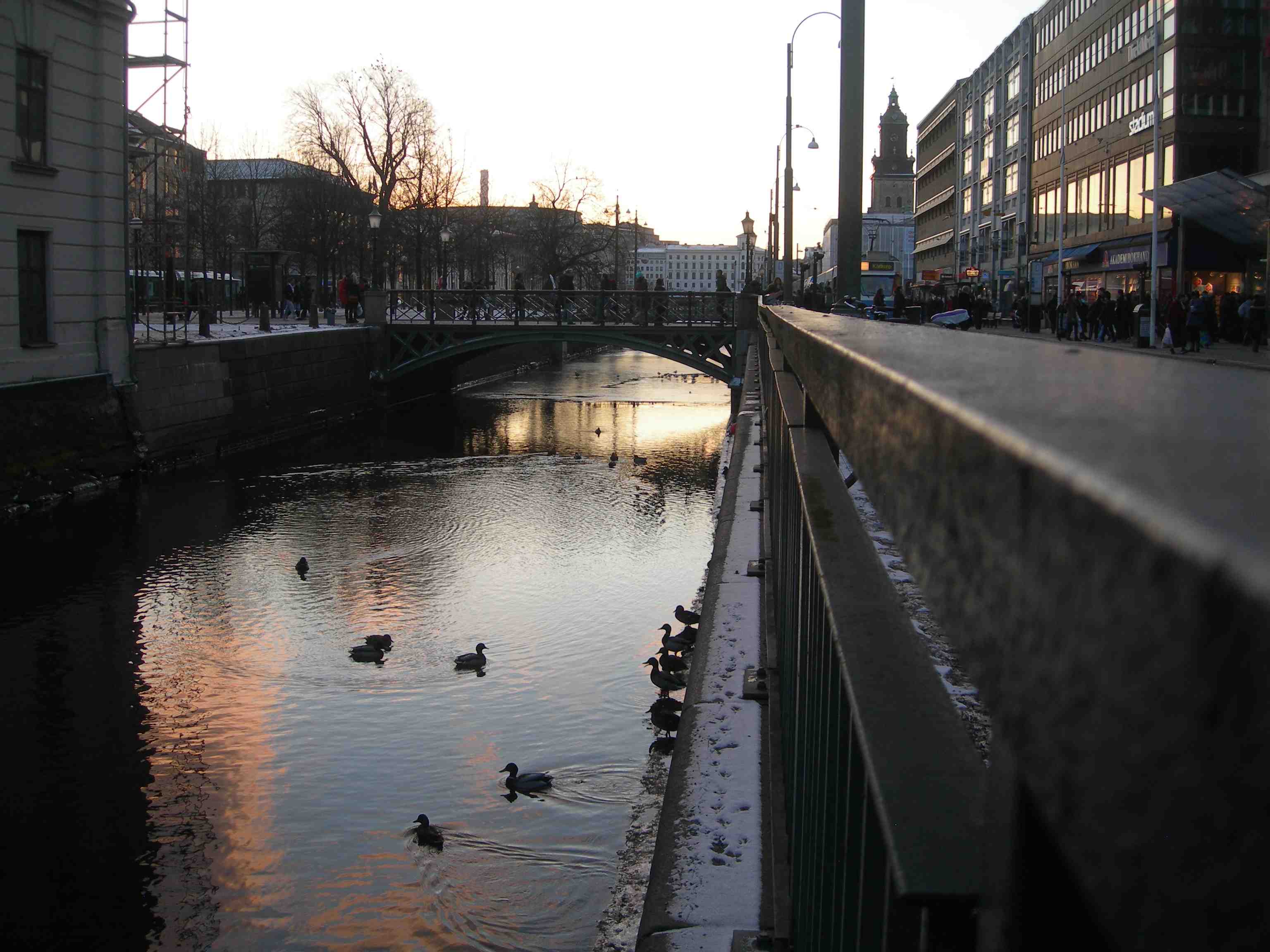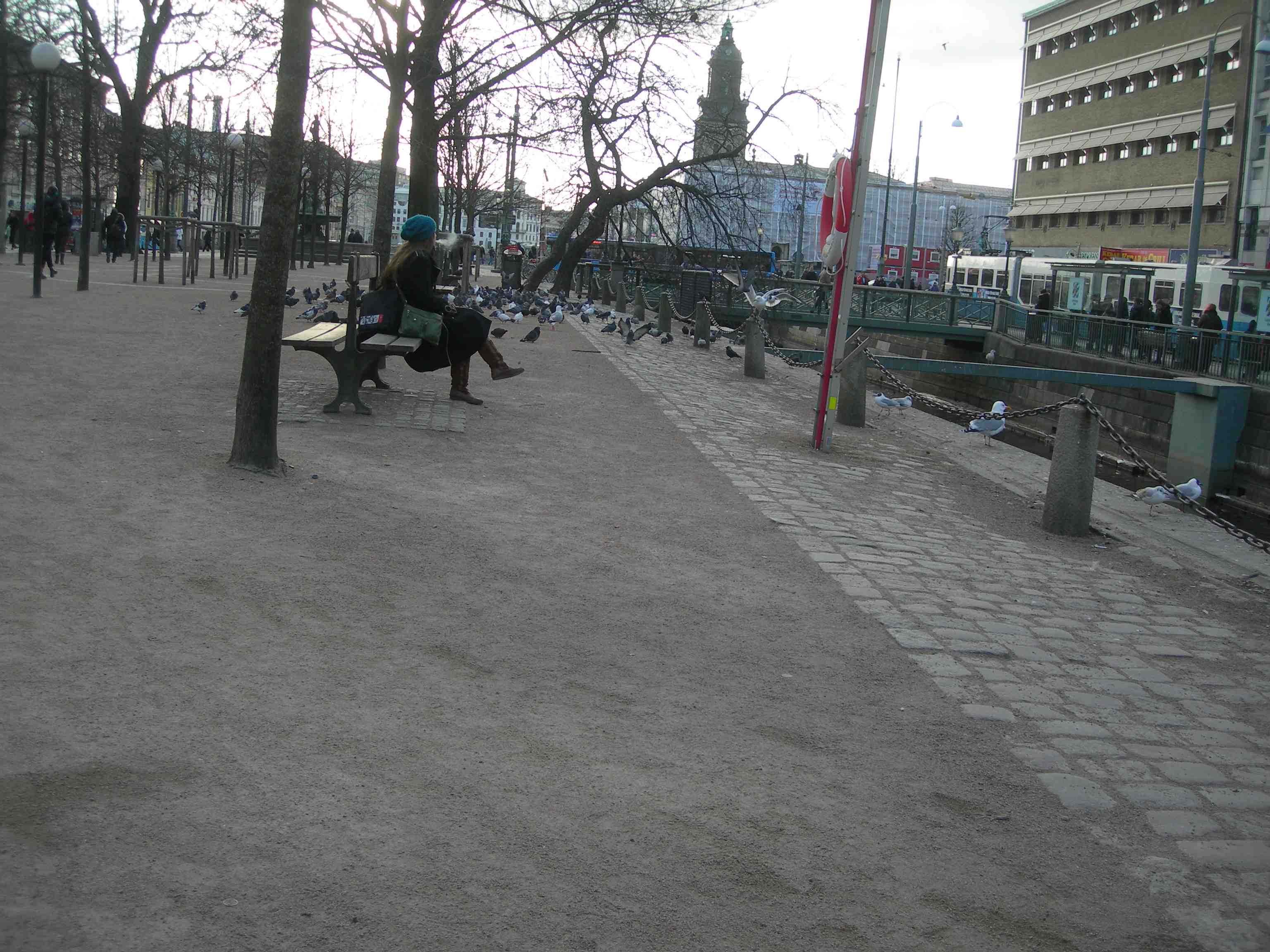 Skrattand på Palace’ baksida vid Stora Hamnkanalen åt Norra Hamngatan. Måndag 11 februari 2013 kl 16.41.