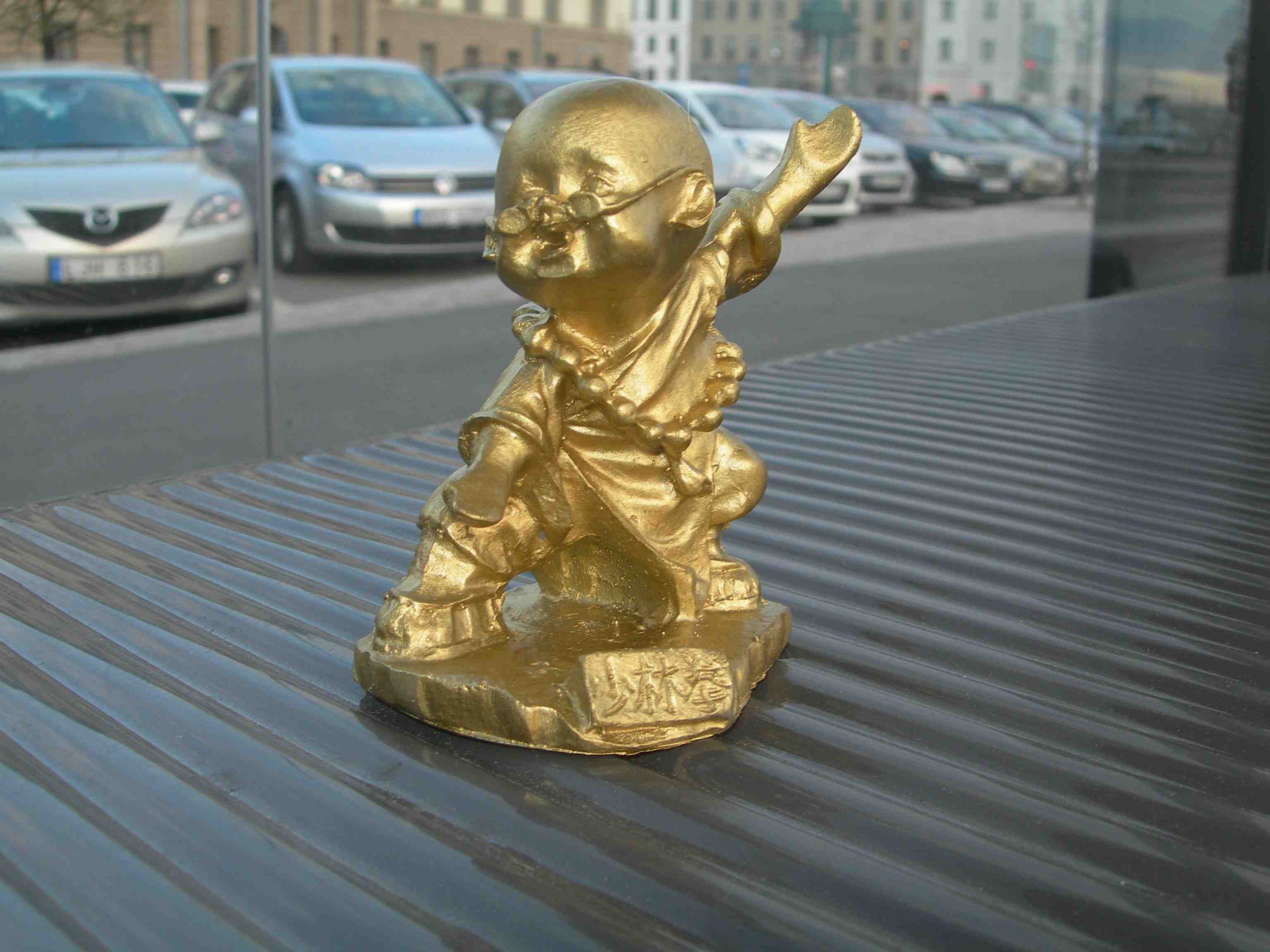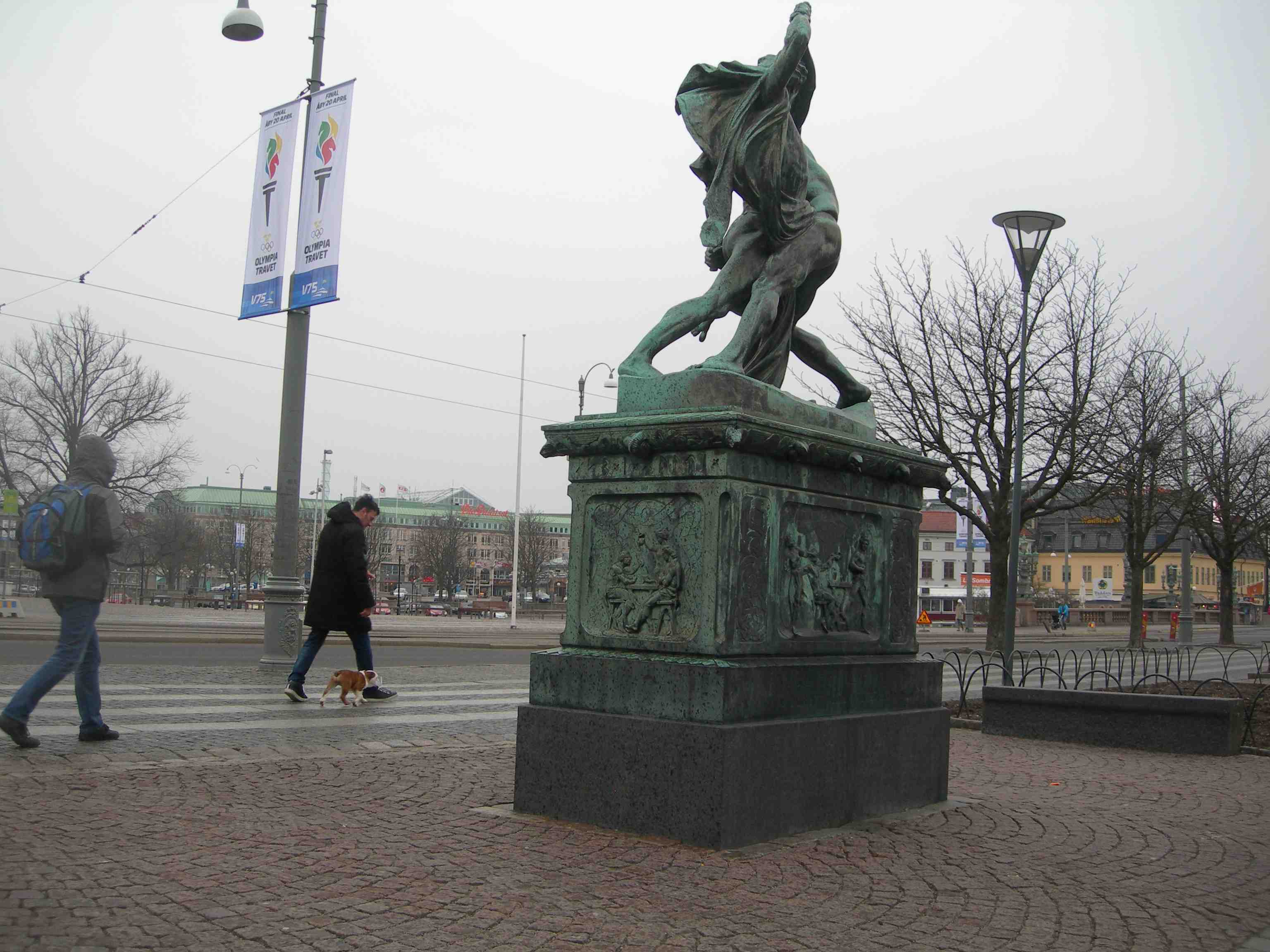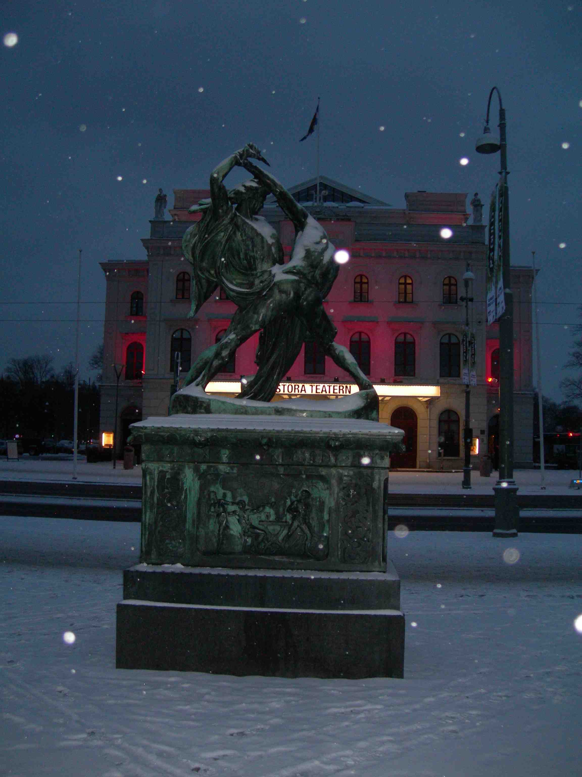 Svärmande par sitter på Stora Vallgravsodjurets kropp och beundrar dess gröna huvud. Mellan Storan och Kungstorget fredag 1 mars 2013 kl 18.10.