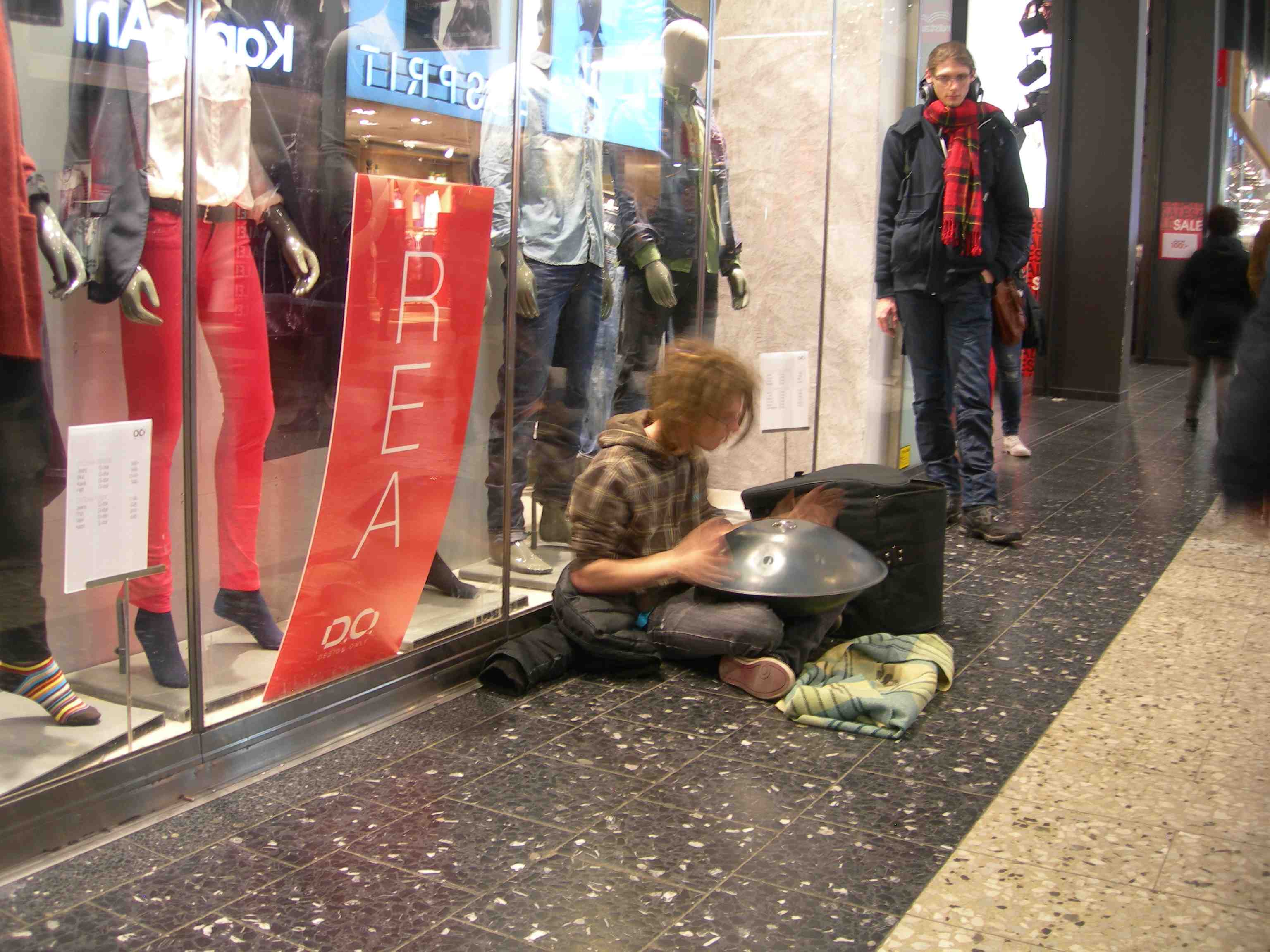 Macho Grande spelar bl.a för parasollöparen vid Göteborgsvarvets Energistation på Kanaltorgsgatan framför Nordstans baksida. Lördag 18 maj 2013 kl 14:17.