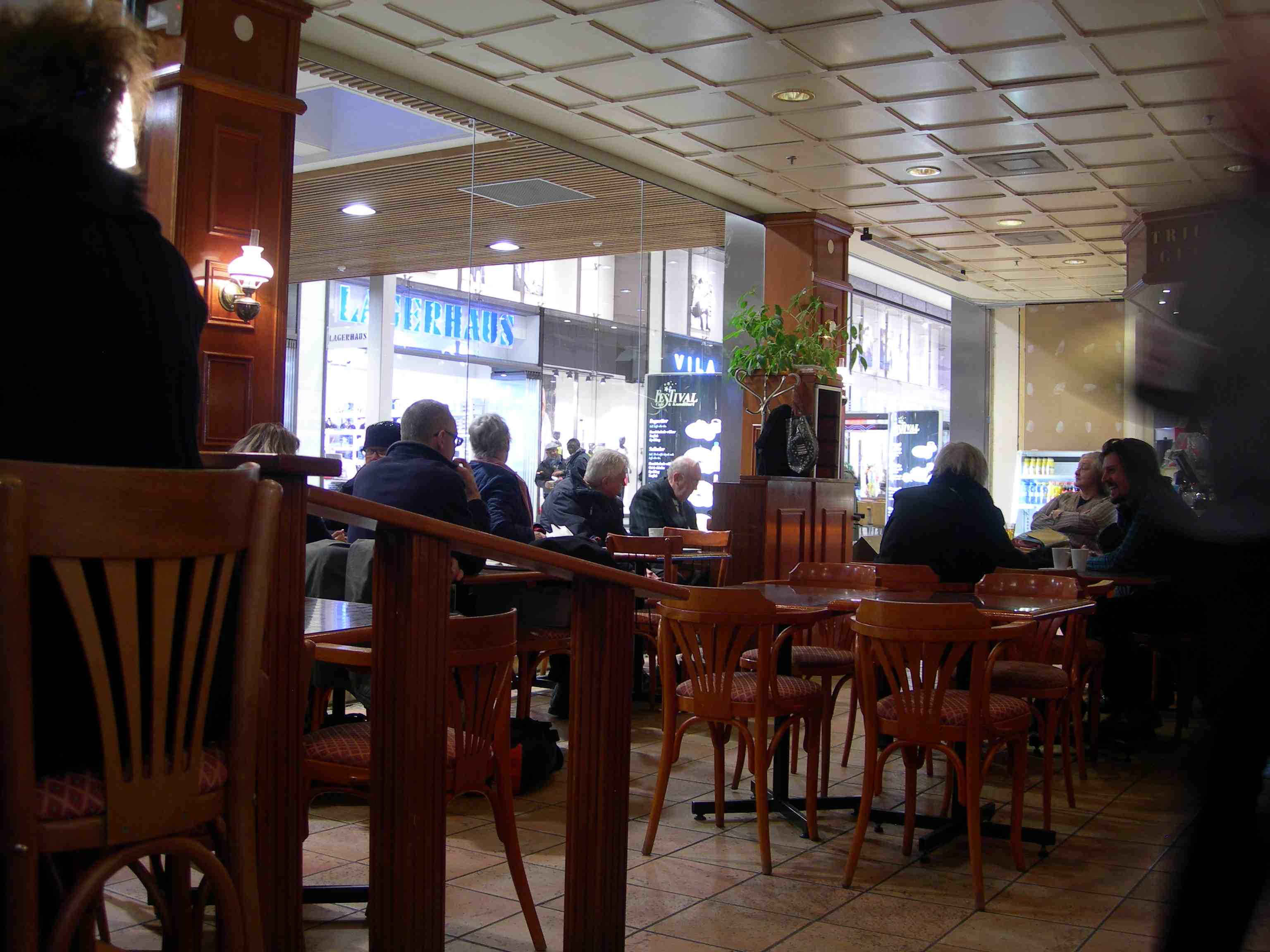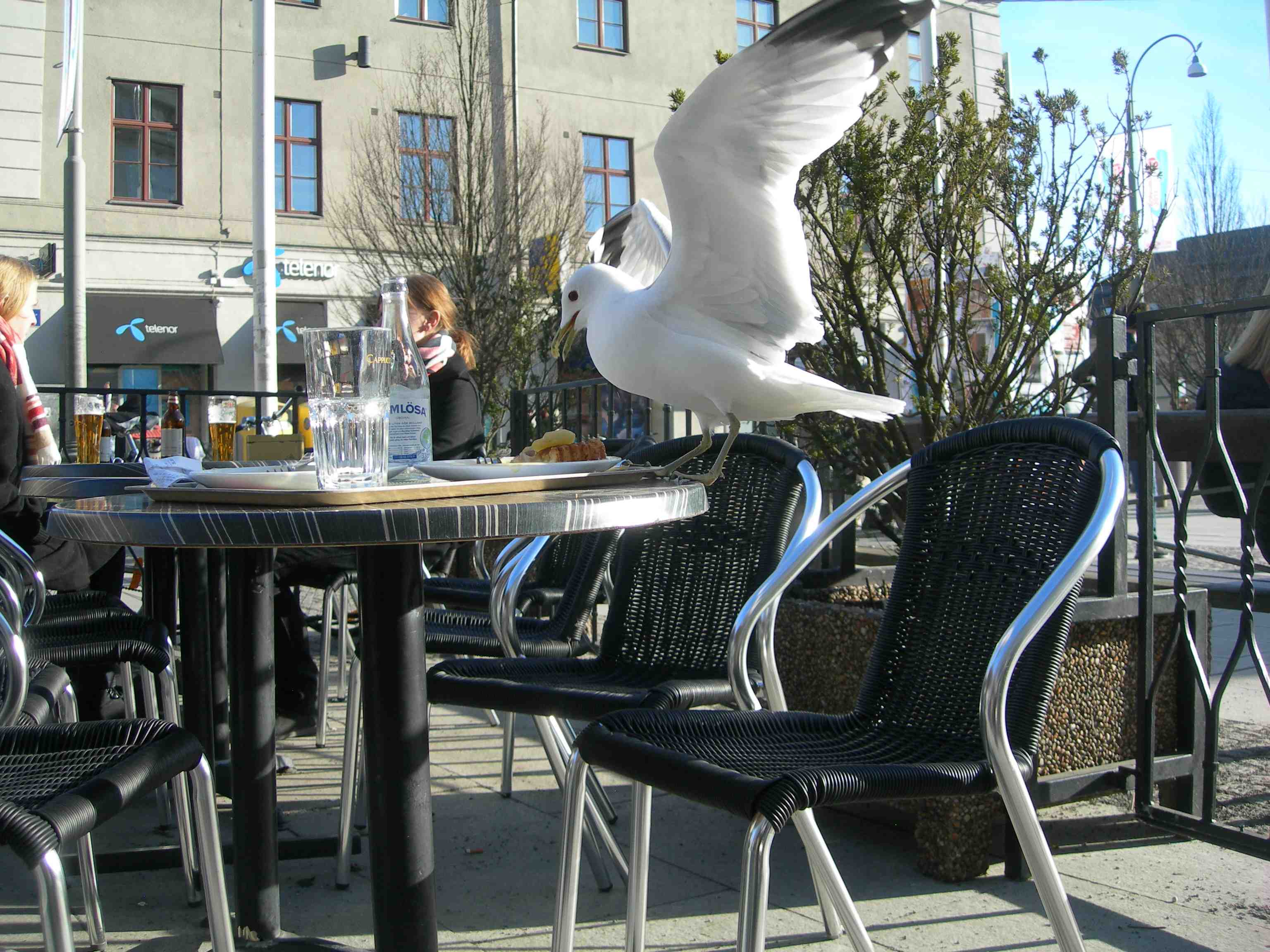 Mås smörjer krås med äppelkaka och vaniljsås. Café Cappuccino vid Kungsportsplatsen torsdag 4 april 2013 kl 17.37.