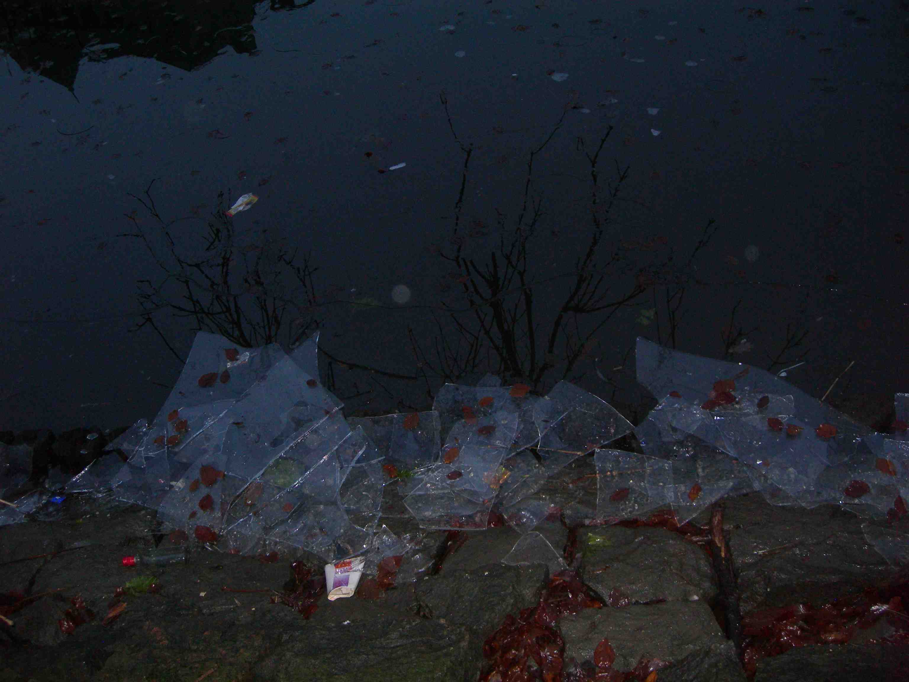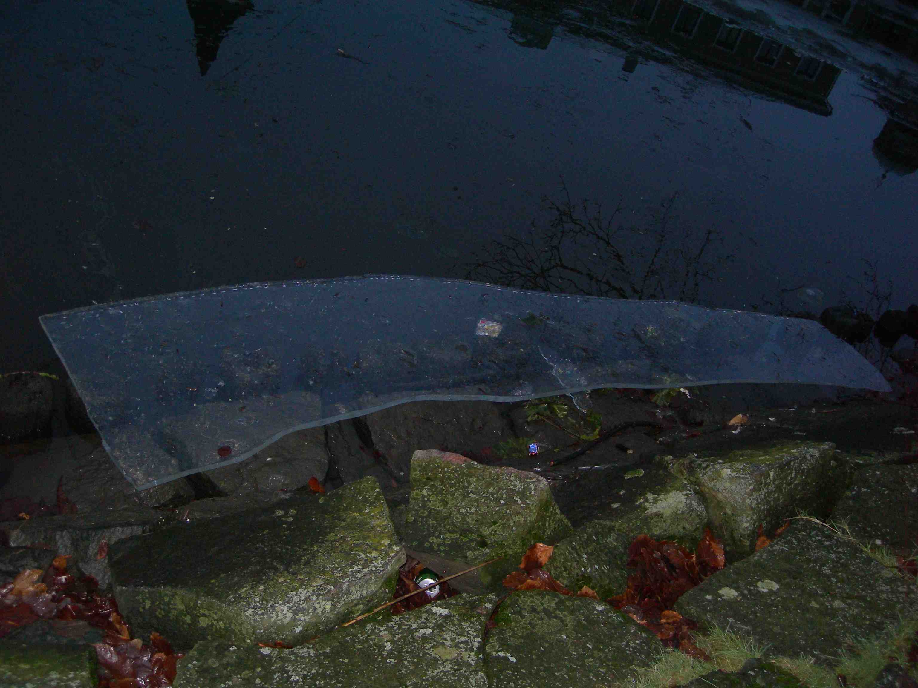 Också en livräddningsbåt, infrusen i årets sista (?) is. Fattighusån vid Slussvaktarstugan torsdag 11 april 2013 kl 17.42.