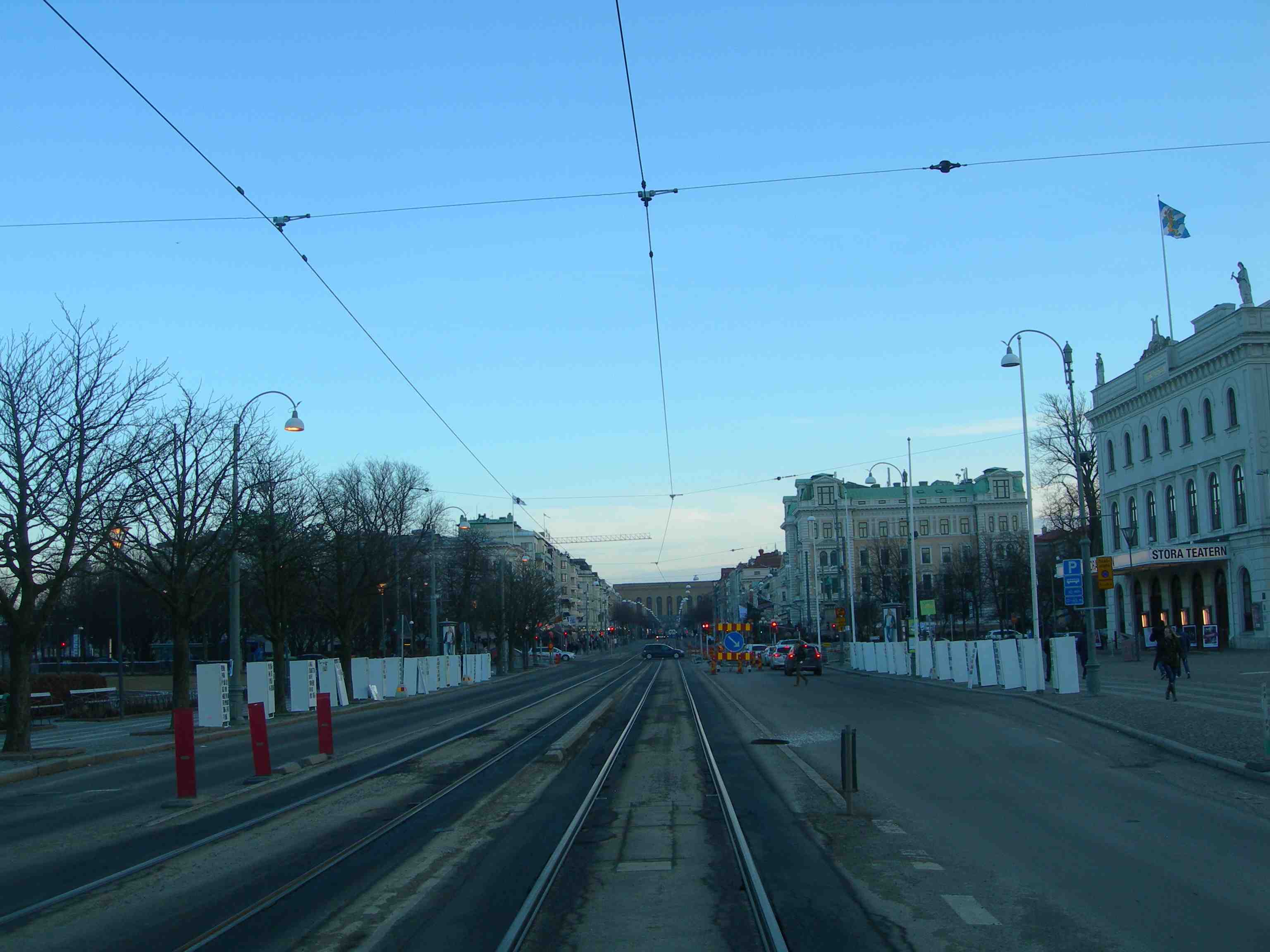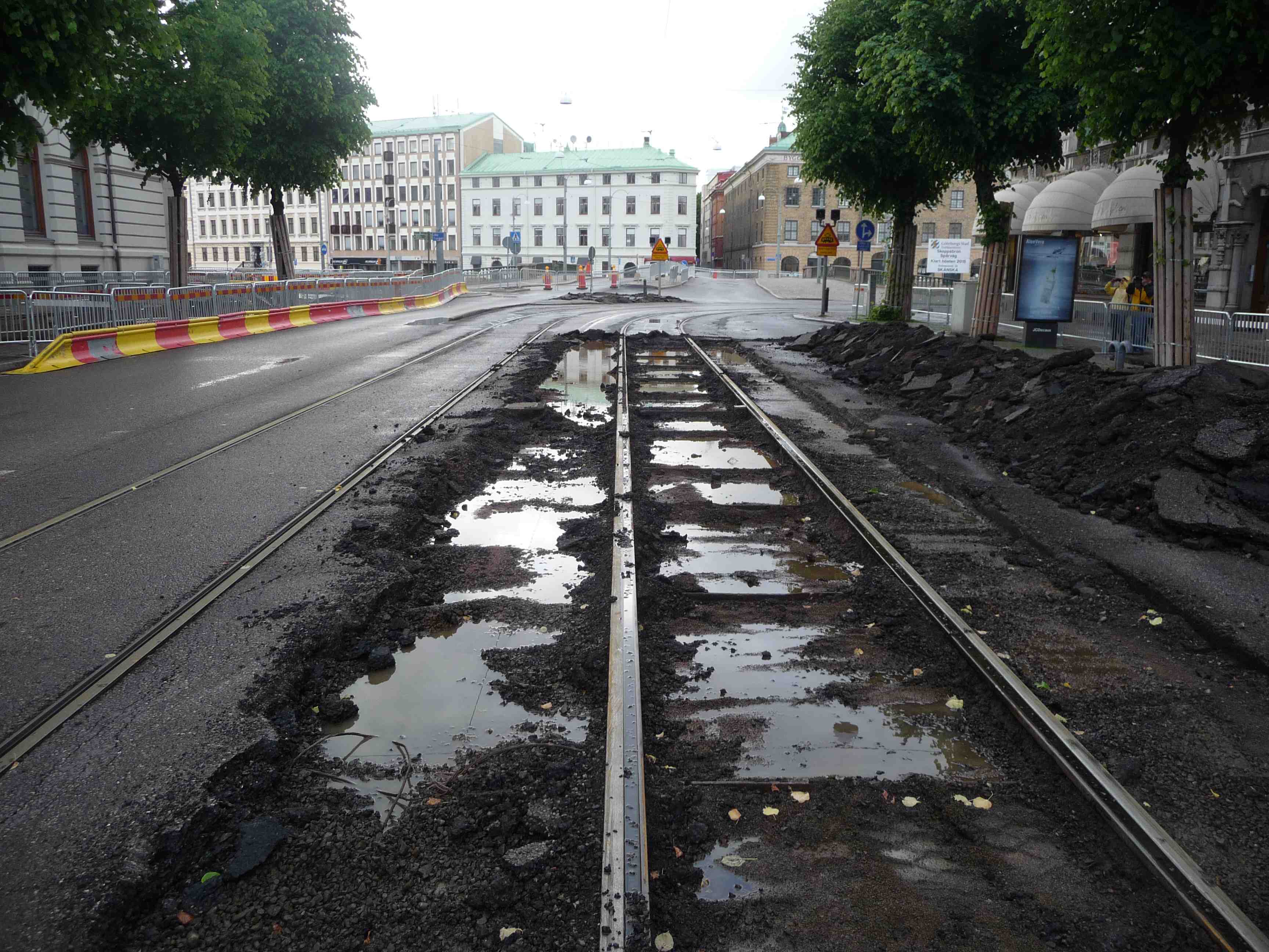 Västra Hamngatan grävs upp för växel åt vänster mot Lilla Torget och Residenset där landshövdingen inte kommer att få en lugn stund i framtiden för alla gnisslande och skramlande spårvagnar. Söndag 16 juni 2013 kl 19:46.