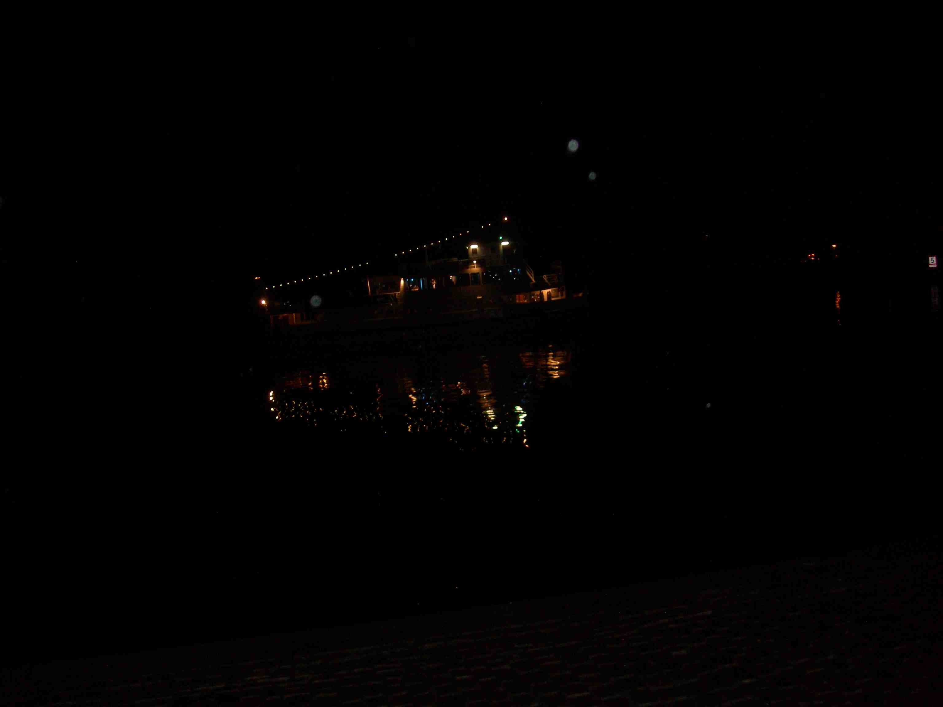 M/S Trubaduren på väg mot kaj vid Lilla Bommen efter Skaldjurskryss med show i Södra skärgården. Tisdag 21 maj 2013 kl 22:51.