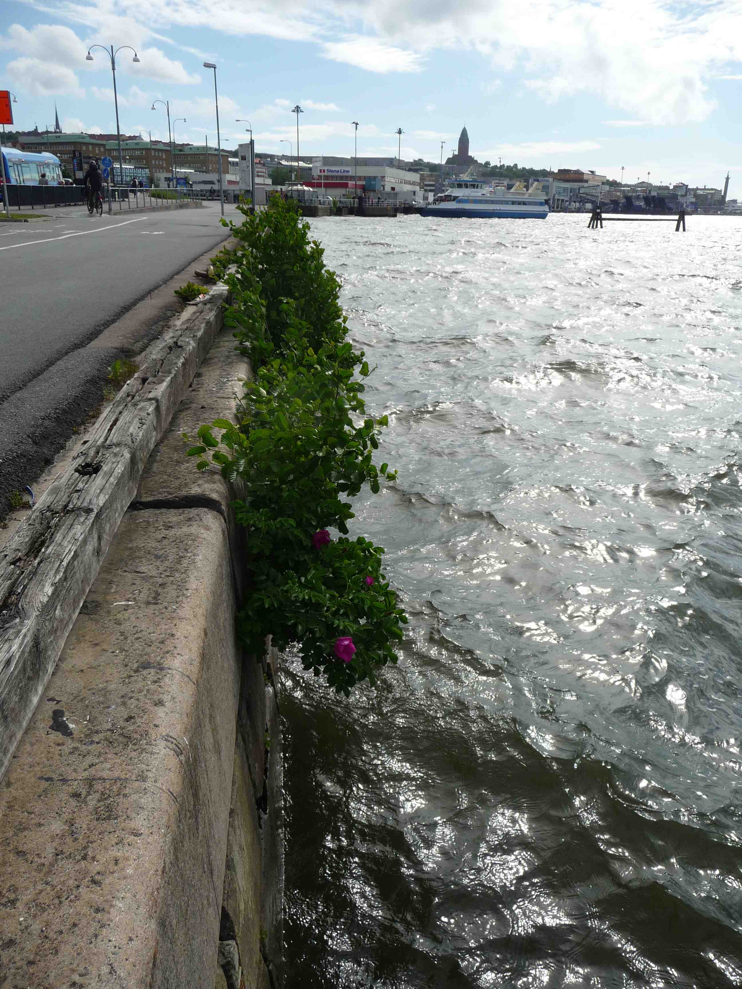 Väldoftande egensinniga röda rosor klänger på Skeppsbrokajen ut över Göta älvs bräckta vatten där Atlanten och Vänern möts. Fredag 14 juni 2013 kl 16:38.