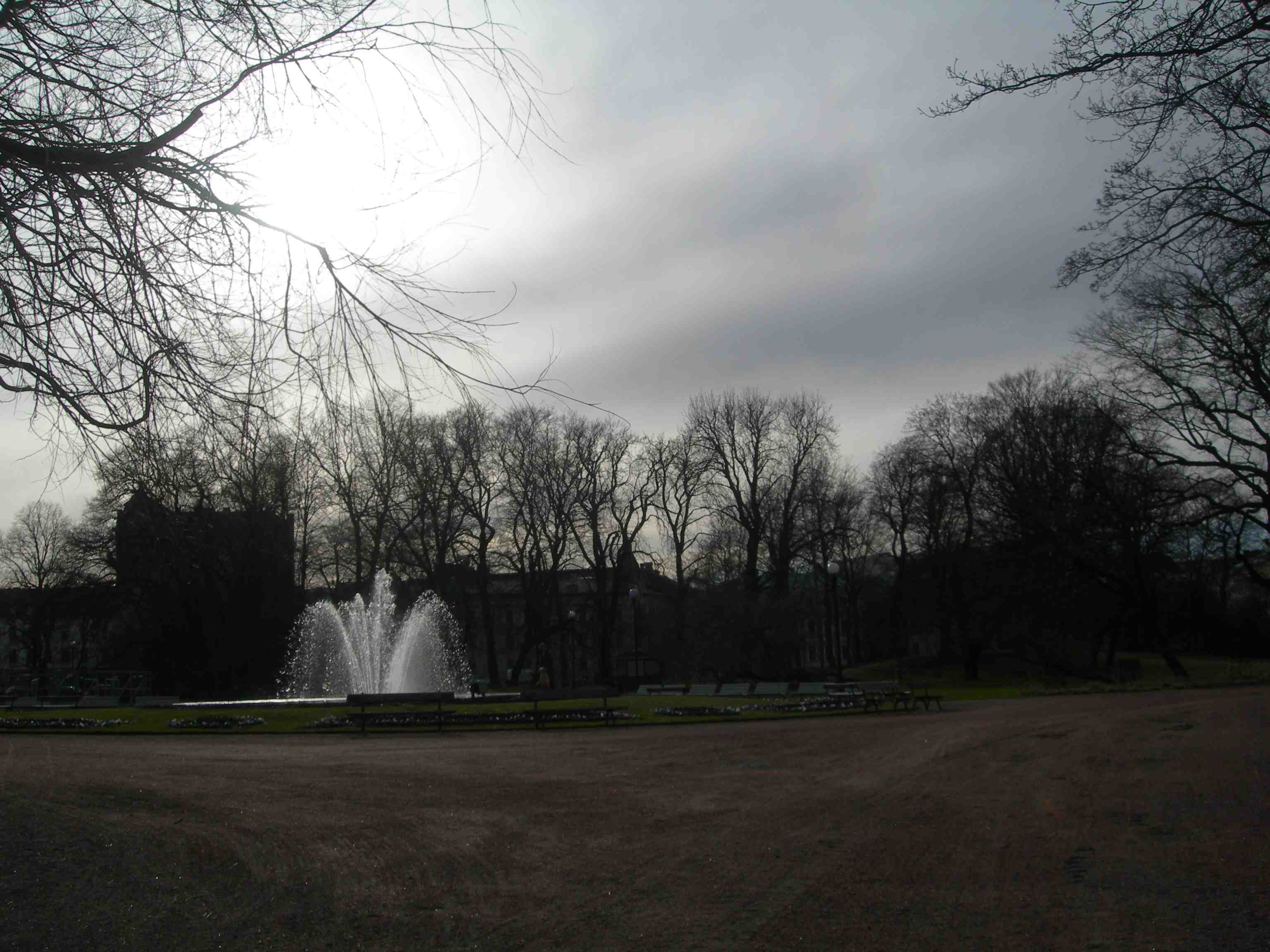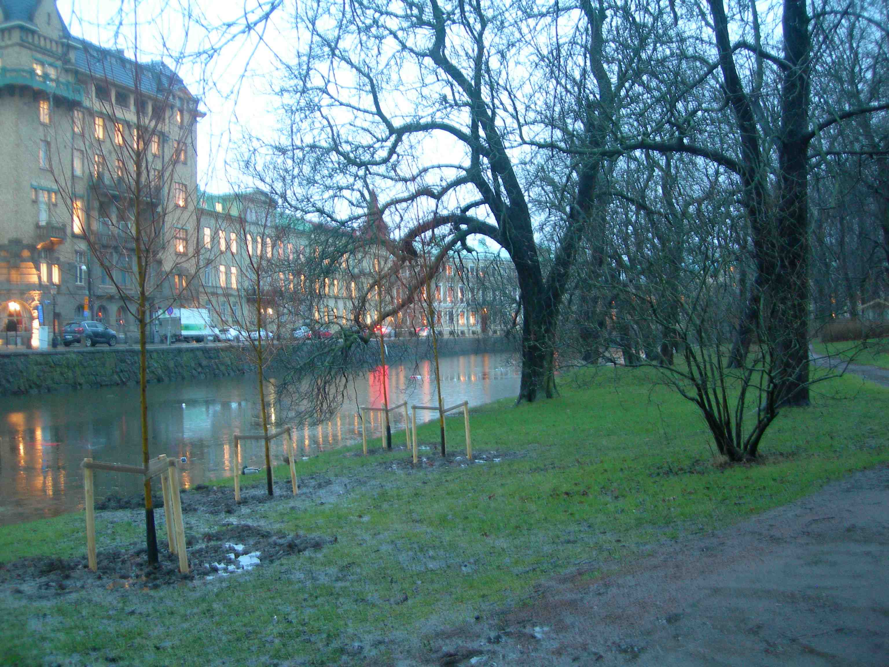 ”Det var den festen…” Vallgraven med Trädgårdsföreningens direktörsvilla i bakgrunden söndag 7 april 2013 kl 17.41.