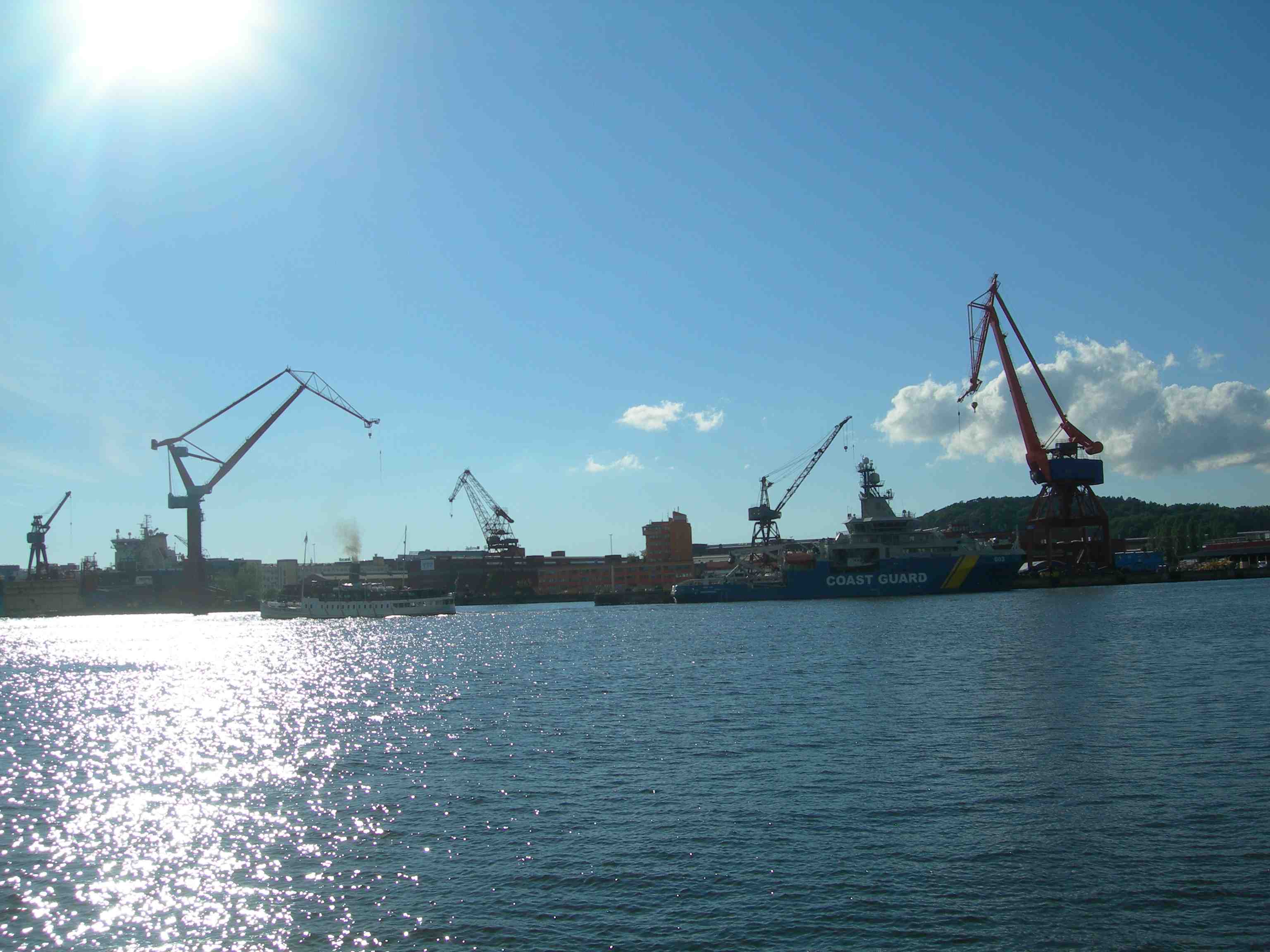 Hamnen full utav båtskrov! Skarven, Coast Guard och Paddan 11 på Götaälv onsdag 8 maj 2013 kl 17:02.