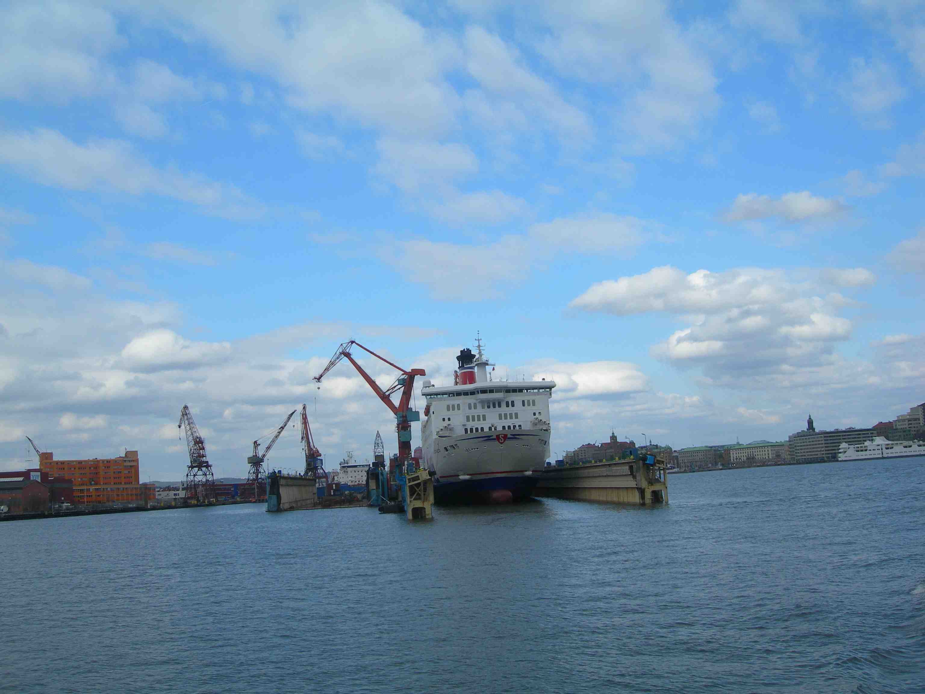 Stena Götheborg? Kommunstyrelsen fattade i dag det olyckliga beslutet att staden Göteborg slutar stödja Ostindiefararen år 2015. Kanske Stena Line tar över? Stena Danica passerar Götheborg på väg till terminalen vid Masthuggskajen. Onsdag 17 april 2013 kl 14.55.