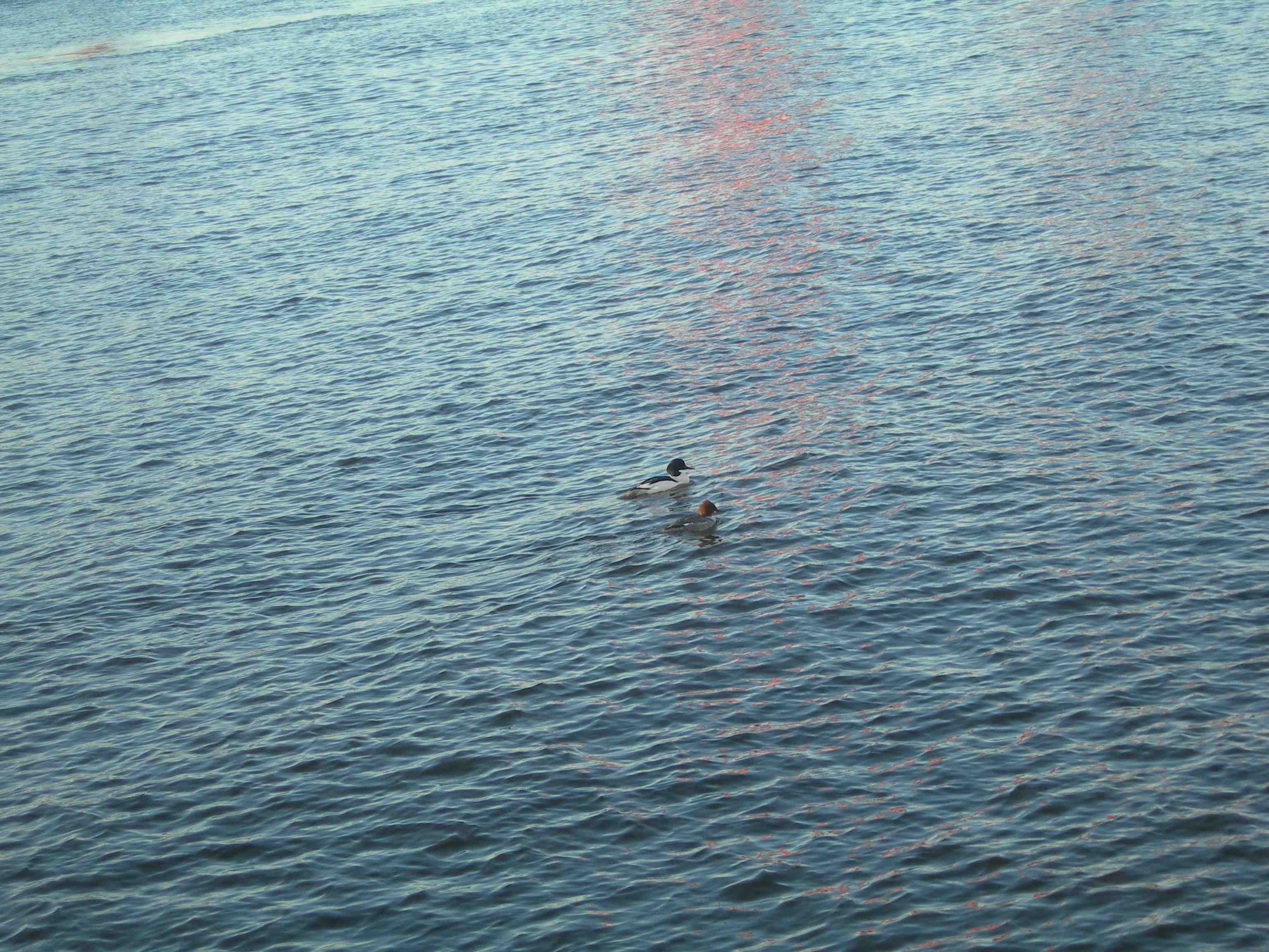 Detta rara gamla strävsamma par… Fru och herr Storskrake vid Slussbron lördag 16 mars 2013 kl 16.22.