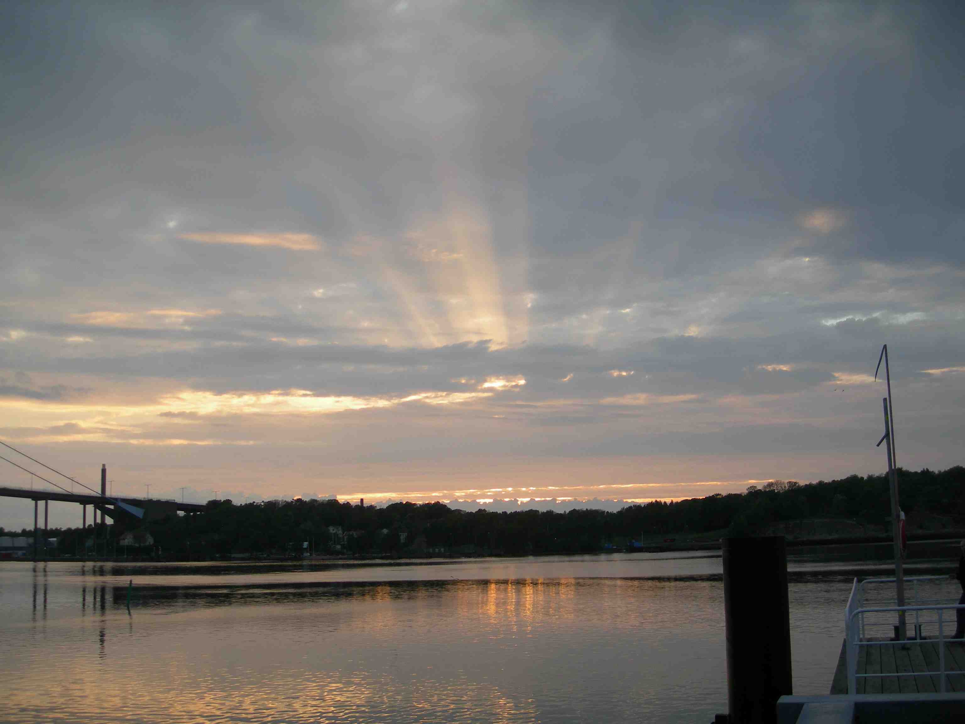 Strålljus över det ädsta Göteborg som grundades 1603 av Carl XI vid Färjenäs på Hisingen. Från Klippans färjeläge måndag 20 maj 2013 kl 20:56.