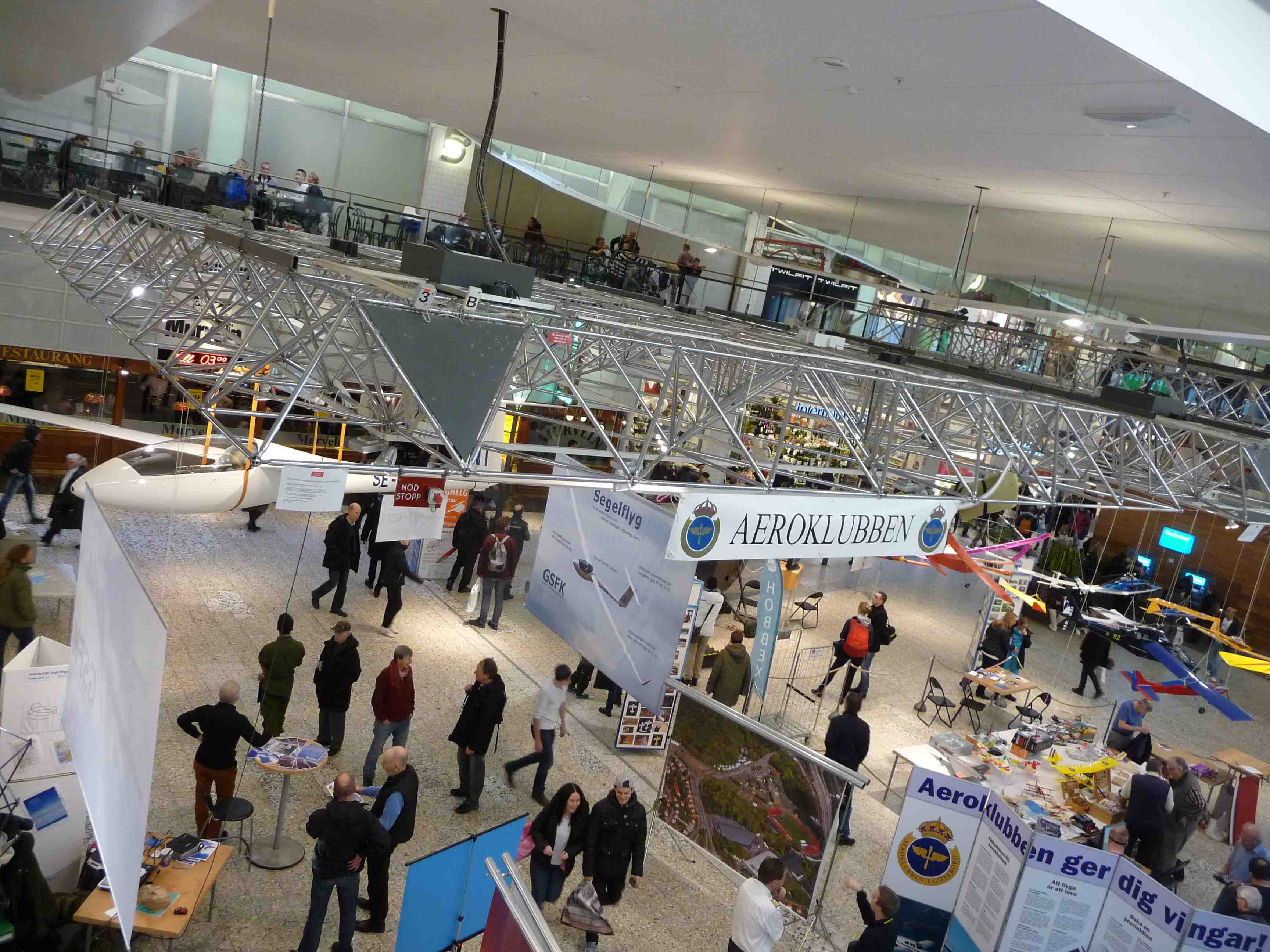 Högtflygande planer smids både över och under Göteborgs Segelflygklubbs SE-UNT, bl.a. med hjälp av vingar från Aeroklubben. Nordstan fredag 28 februari 2014 kl 15:59.