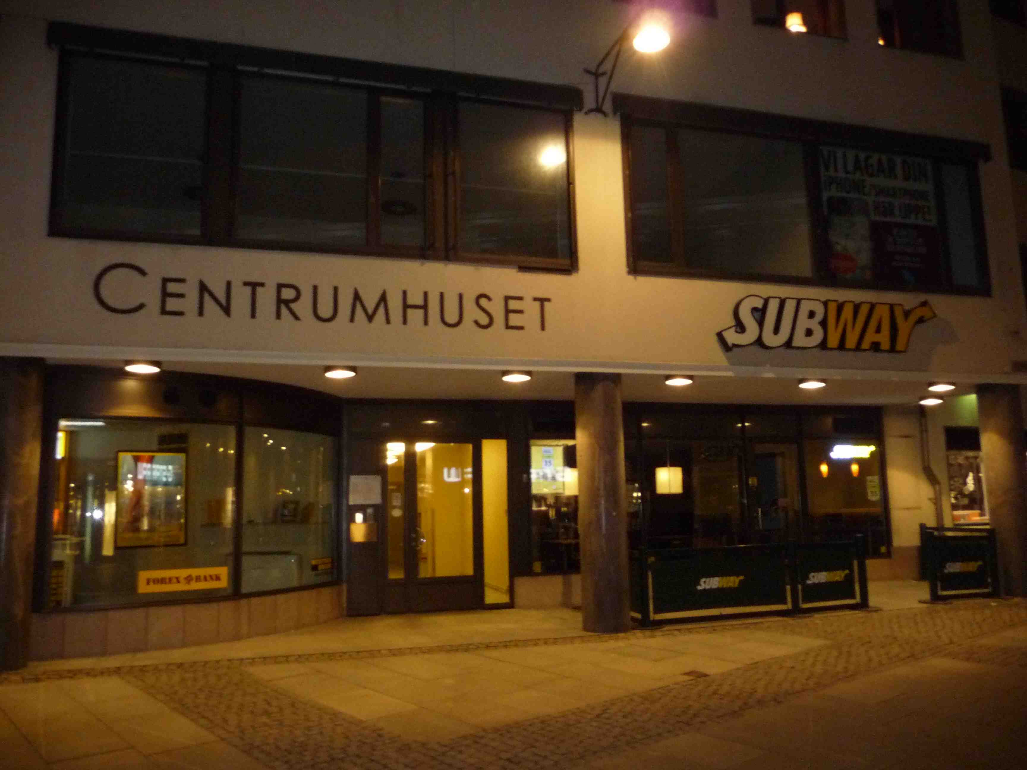 Centrumkiosken borta från Centrumhuset och ersatt med Subway. Kungsportsplatsen fredag 21 februari 2014 kl 23:14.