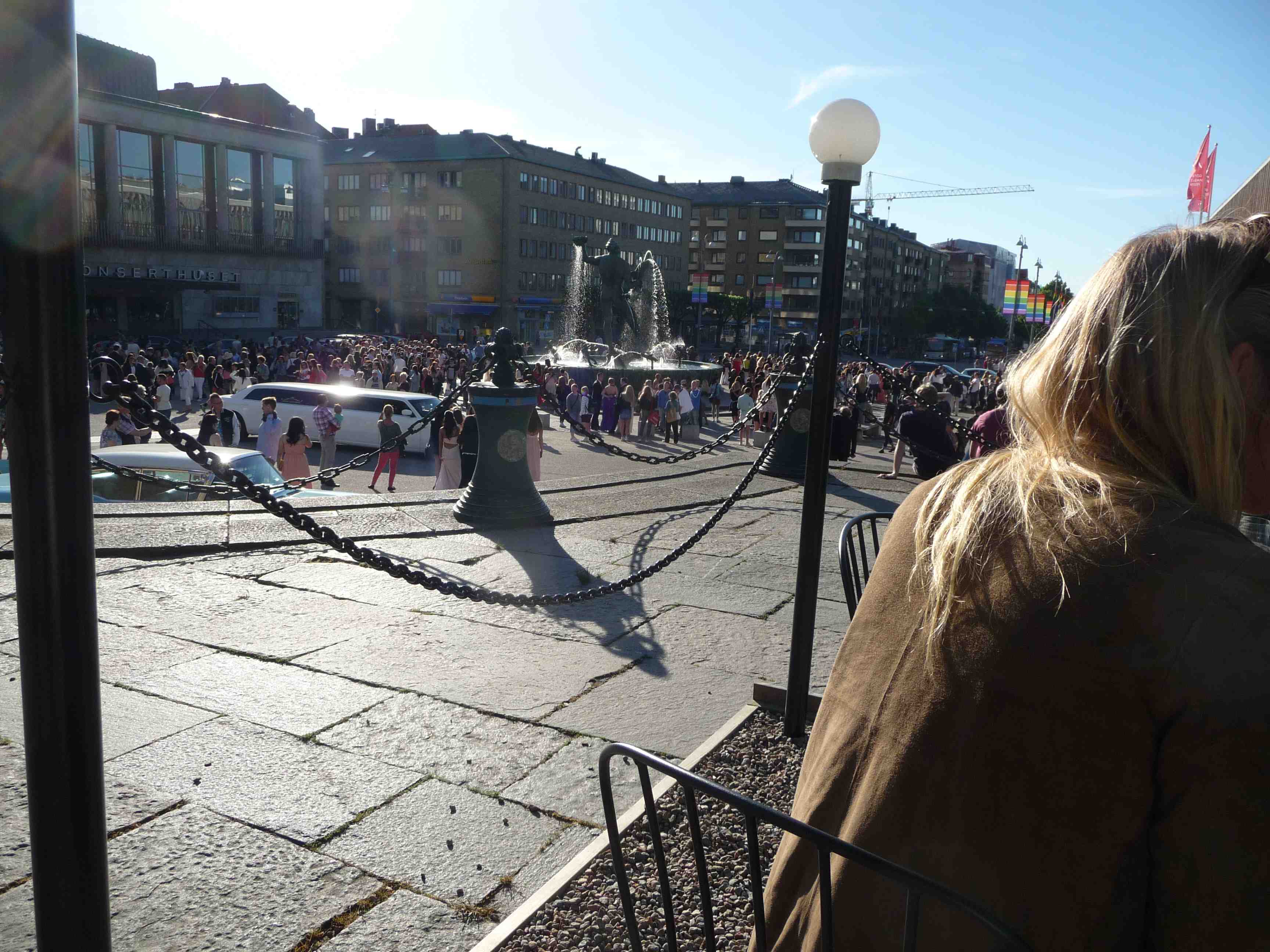 Svårt att hänga med när jycken rusar på ballongjakt! Kungsportsplatsen Kristi himmelfärdsdag torsdag 29 maj 2014 kl 17:58.