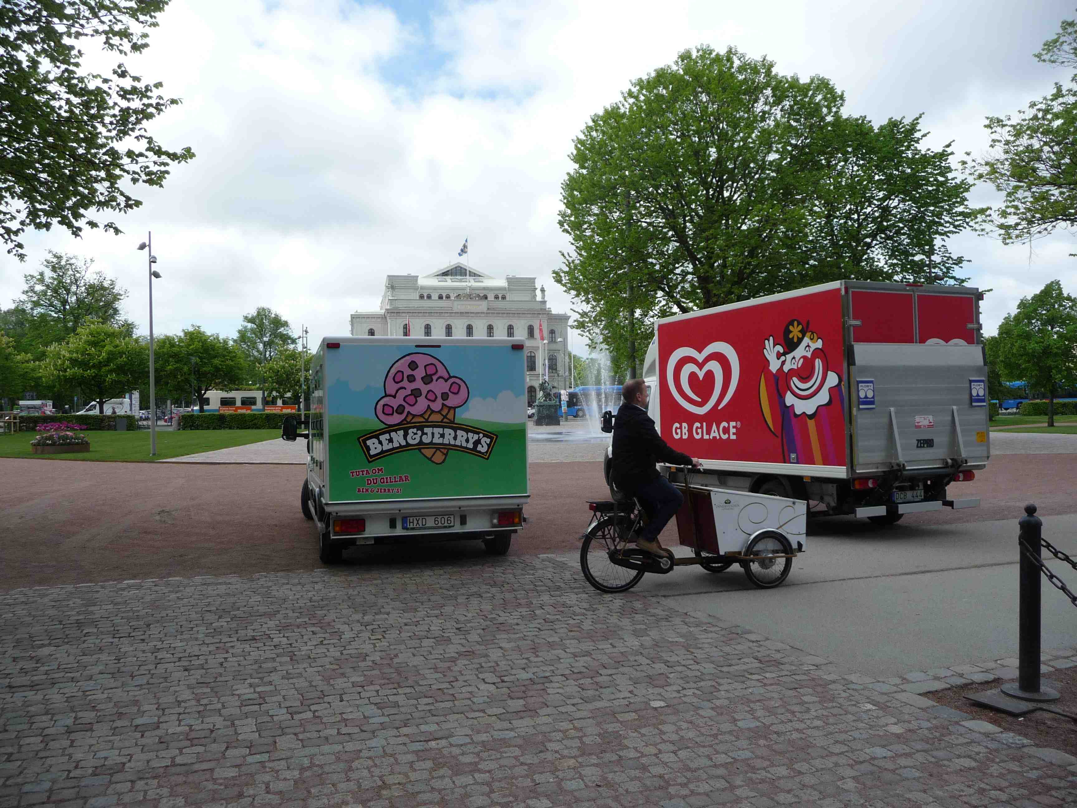 Glassbilar i Bältespännarparken som förmodligen levererat till till kiosken och/eller Grindstugan innanför Trädgårdsföreningens entré. Fredag 16 maj 2014 kl 11:39.
