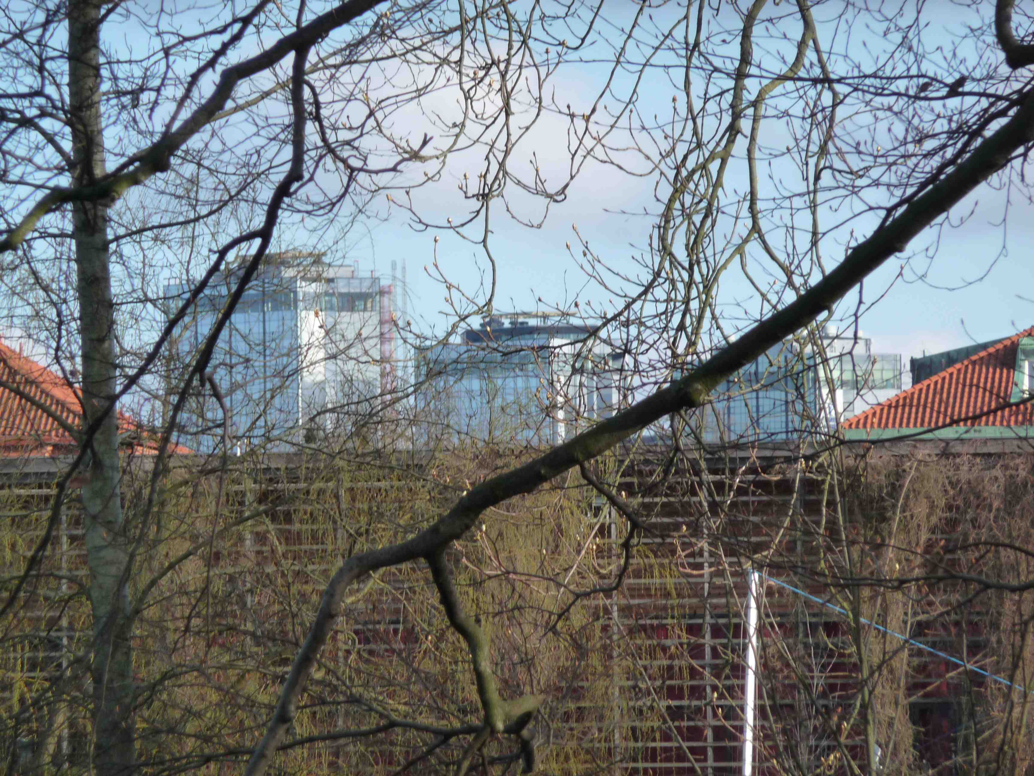 Snart döljs dom tre Gothia Towers av grönskan i Trädgårdsföreningen. Nästa gång tornen syns igen från samma plats i slutet av året är East Tower, det högsta till vänster, just färdigbyggt med sina 100 meter, 31 våningar och 500 hotellrum. Söndag 23 mars 2014 kl 16:33.
