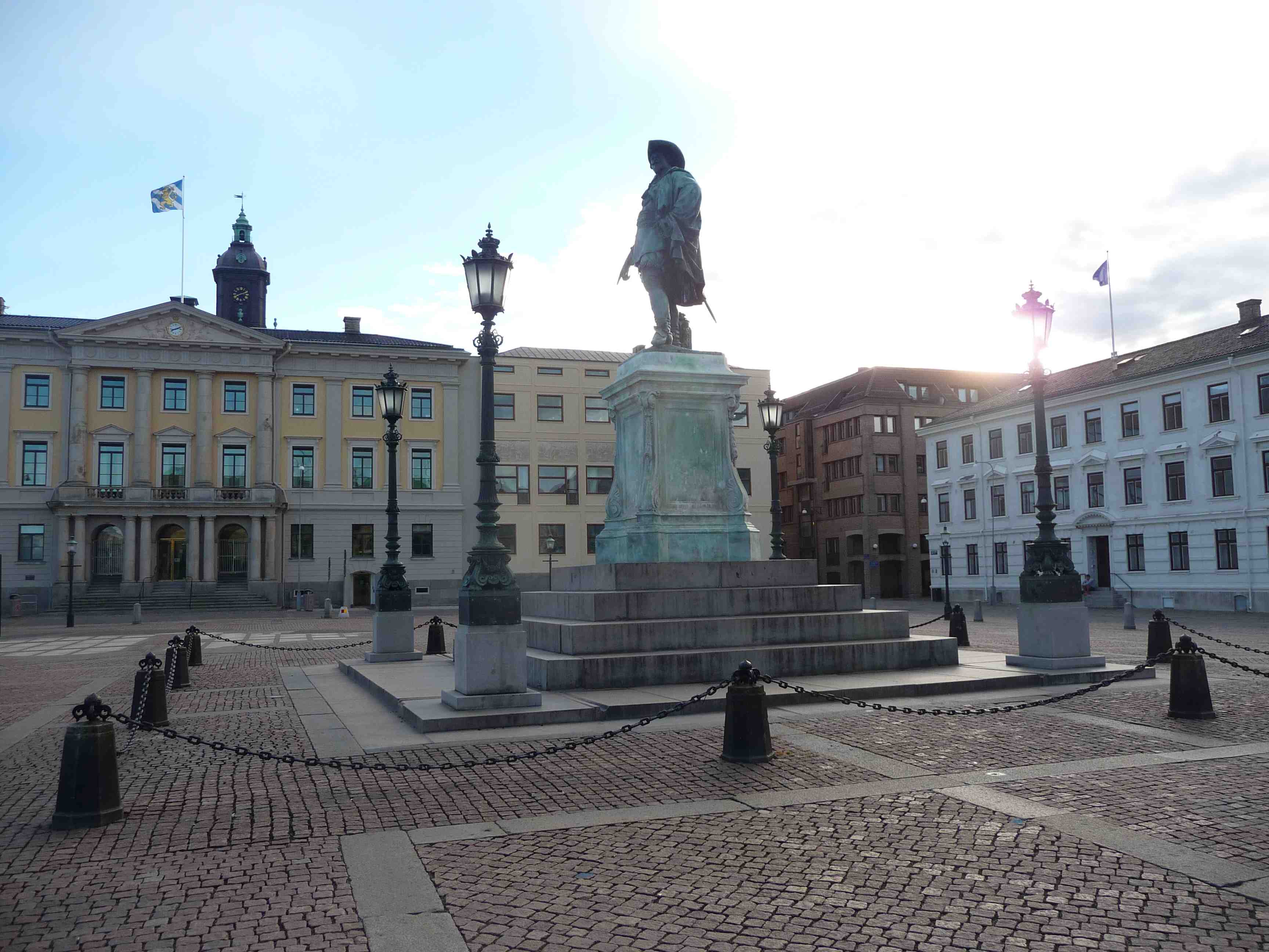 Seriefiguren och krigsförbrytaren Gustaf II Adolf på sitt eget Gustaf Adolfs Torg, riktigt roligt ritad av Eric Werner. Onsdag 9 april 2014 kl 18:27.
