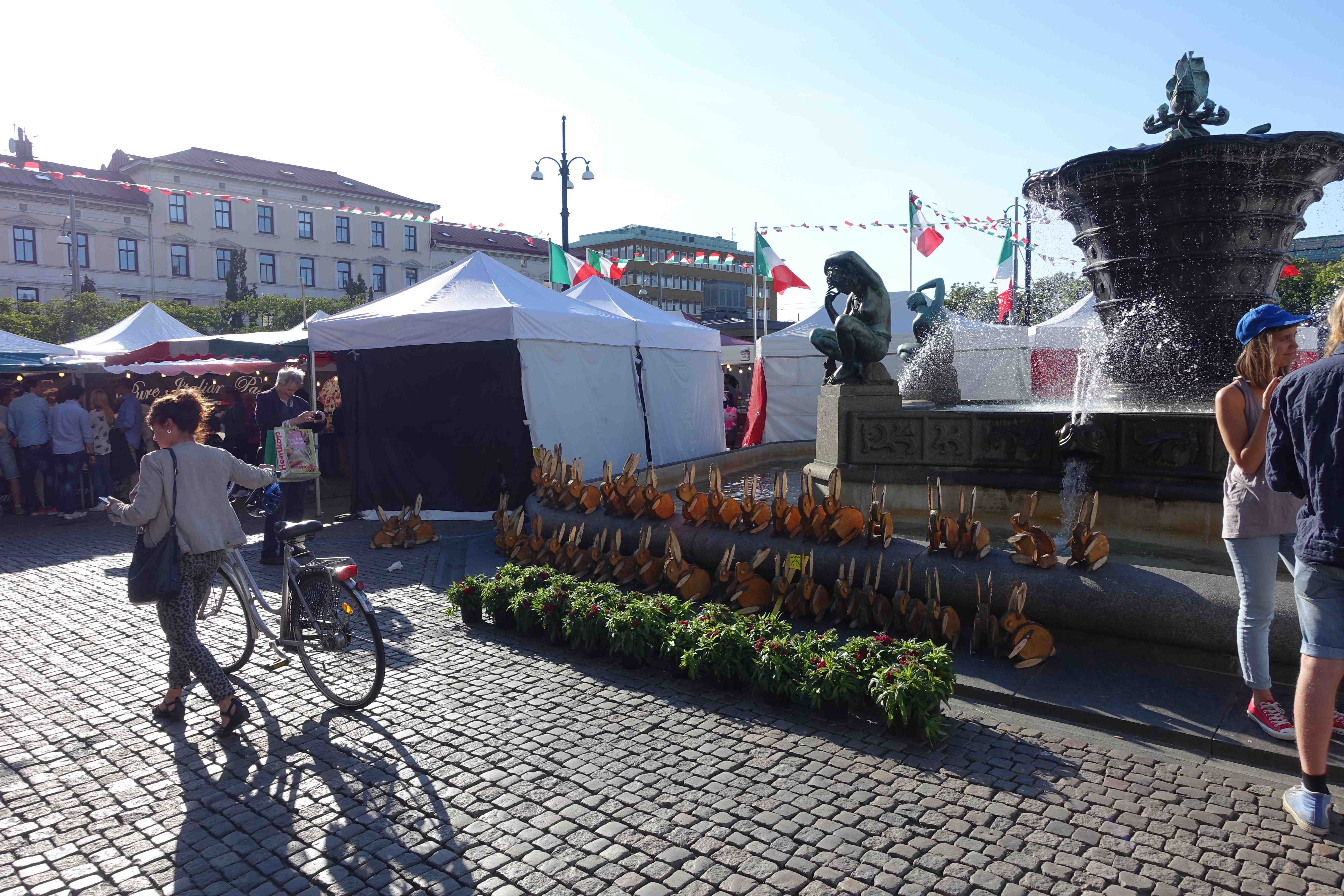 Jonas Alströmer funderar från sin piedestal på Lilla Torget: ”En så’n där dinosaurie skulle man haft på min tid, då hade Sverige varit en stormakt på potatis.” Midsommarafton fredag 20 juni 2014 kl 18:07.