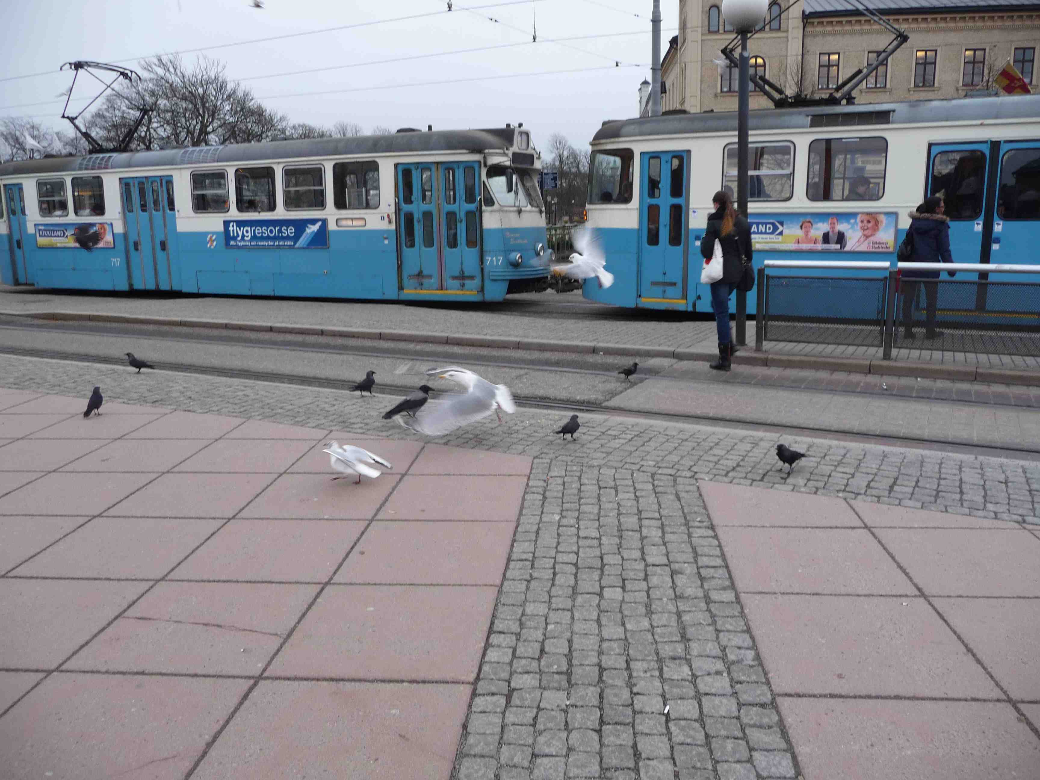 Paddan 4 får service och Paddan 11 passerar mellan Kungstorget och Stora Teatern. Måndag 9 juni 2014 kl 18:15.