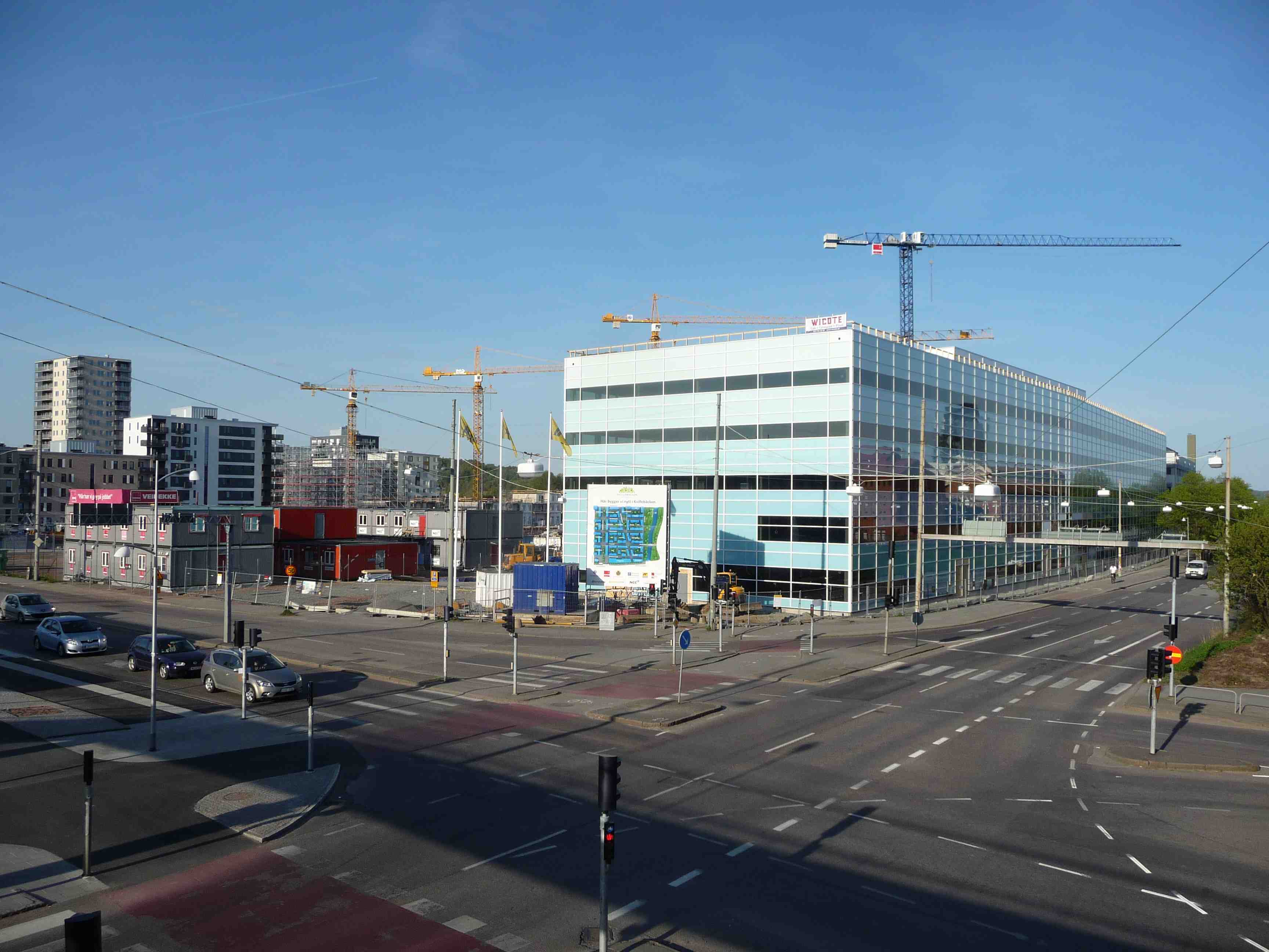 Auktionsverket invigde i dag nya visningalokaler på Värmlandsgatan 2 i hamnarbetarnas gamla Asken, Stora Asken, byggt 1963 med adress Andréegatan 9. Stenaterminalen till vänster. Lördag 29 mars 2014 kl 15:58.