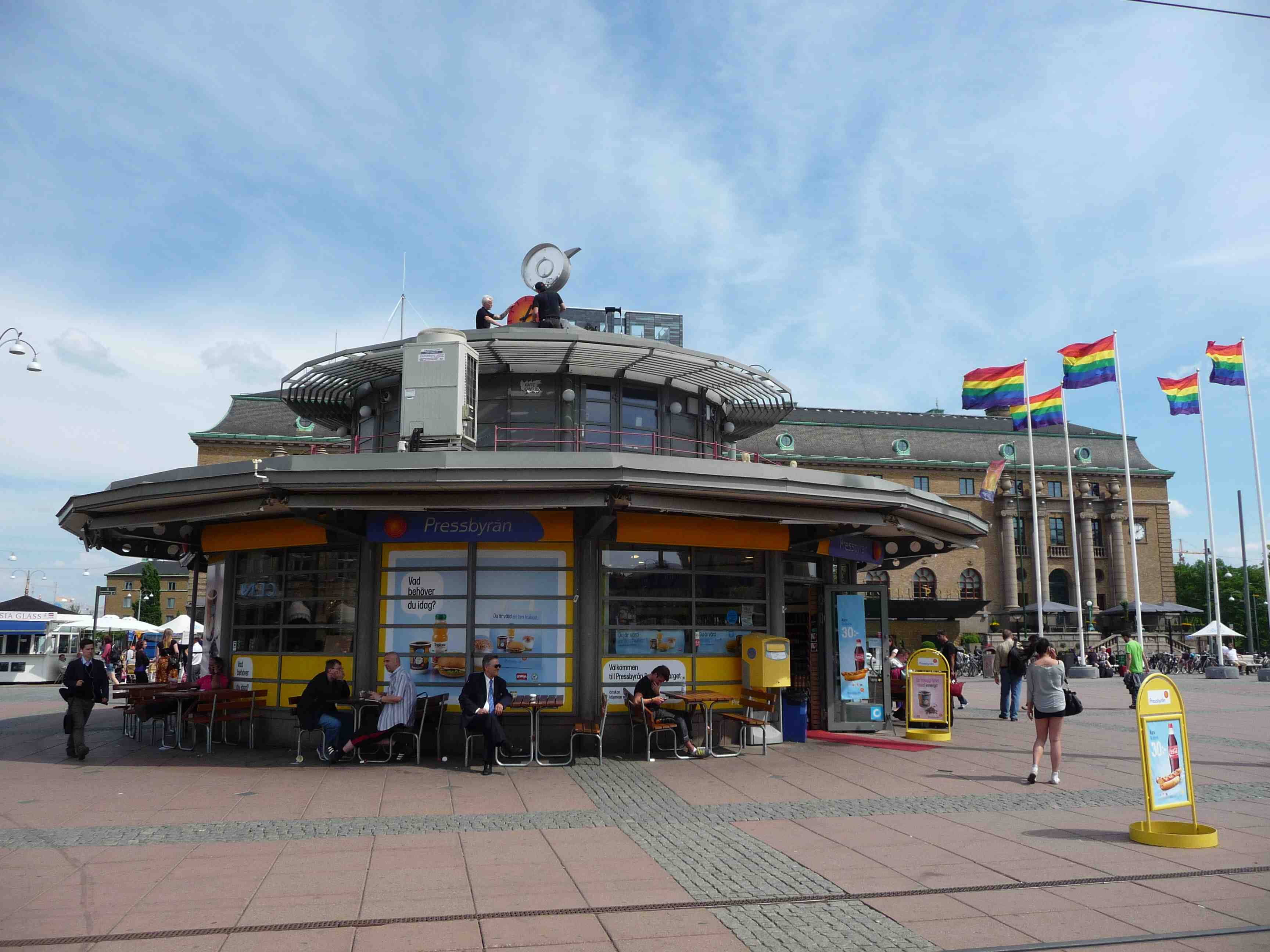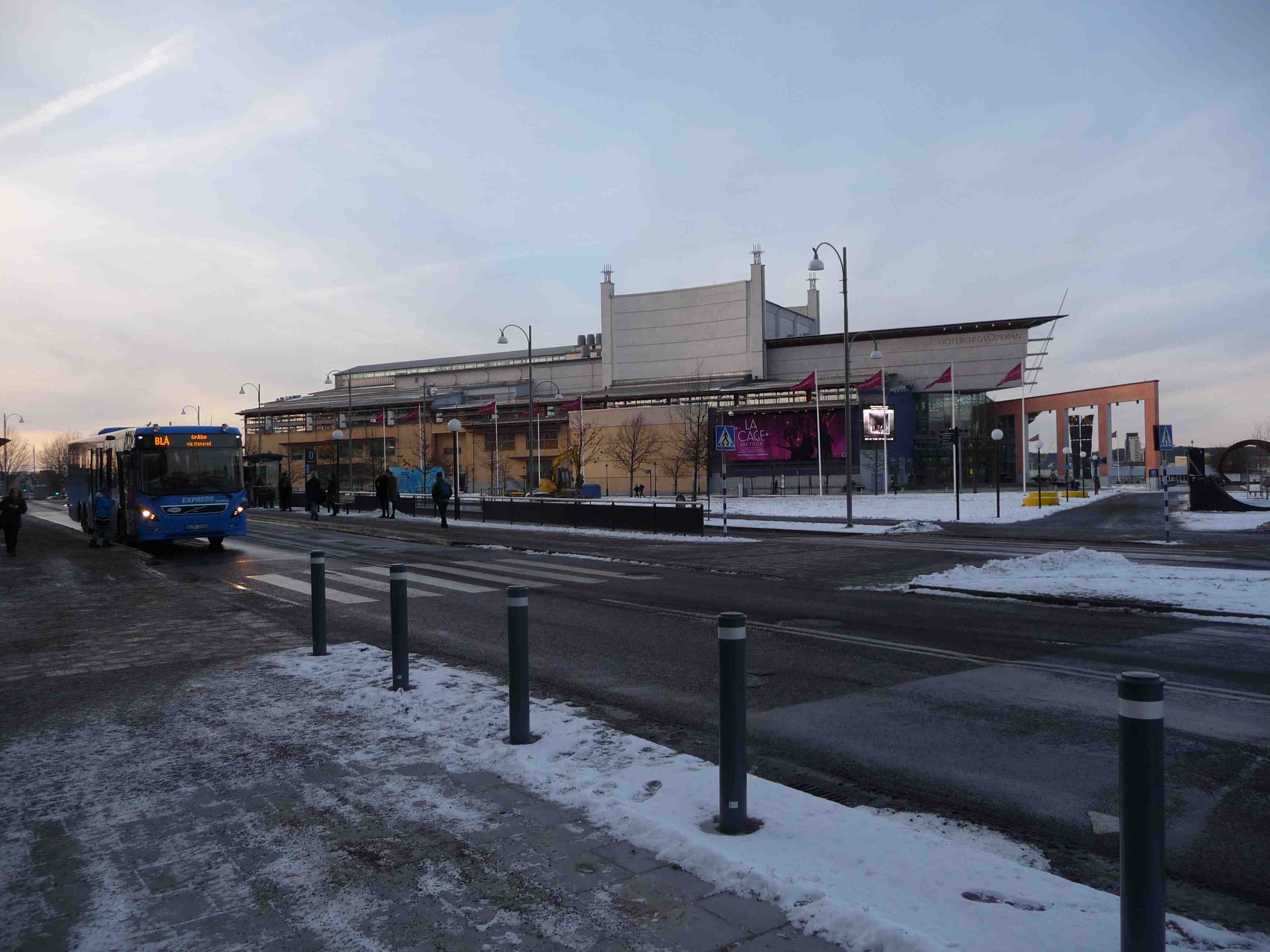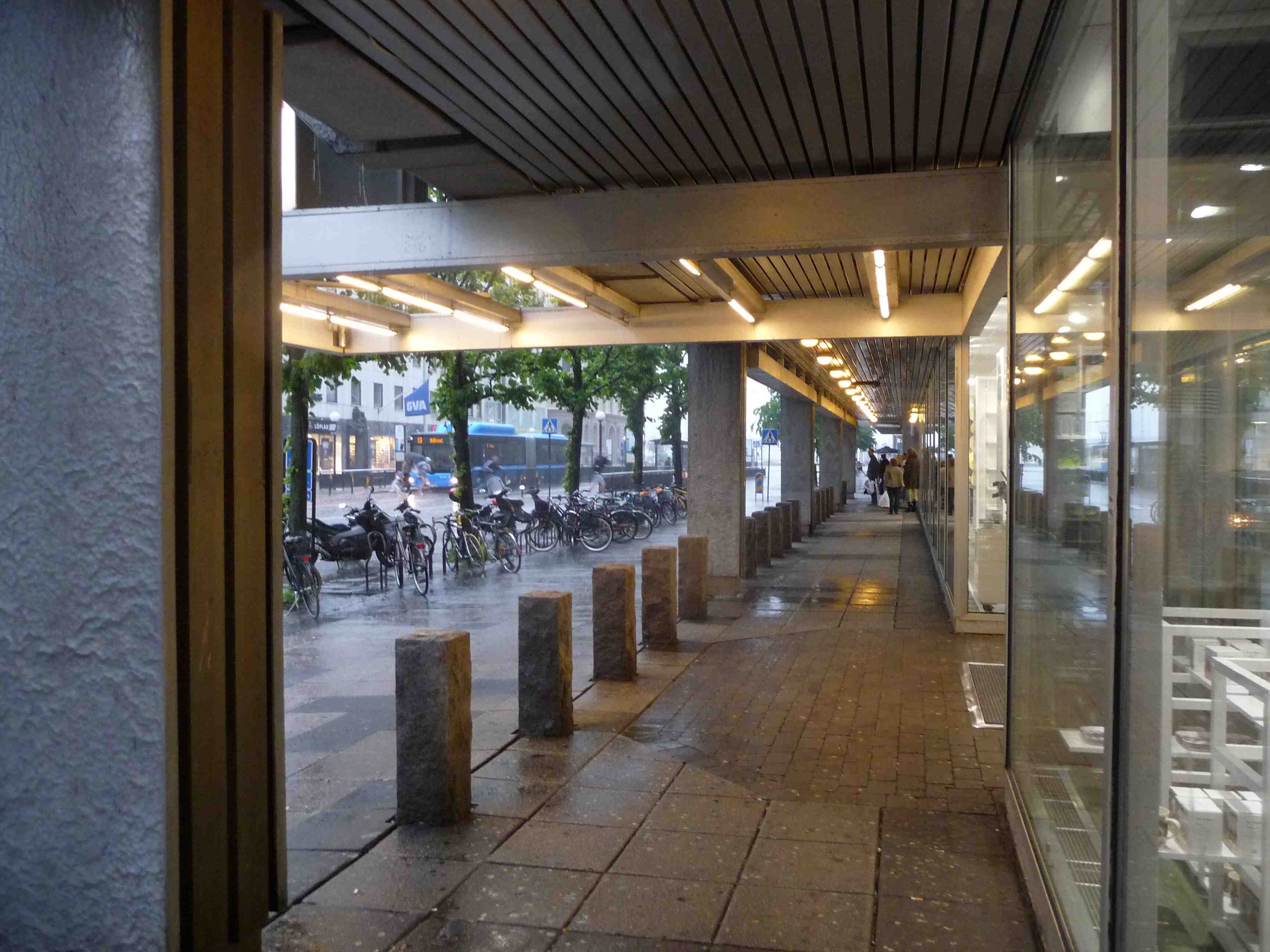 Stadsbibliotekets hörne mot Stadsteatern och Poseidon där Bibliotekscaféet borde ligga. Snart har jag argumenterat för detta i 50 år och lär få fortsätta 50 år till. Lördag 26 april 2014 kl 18:03.