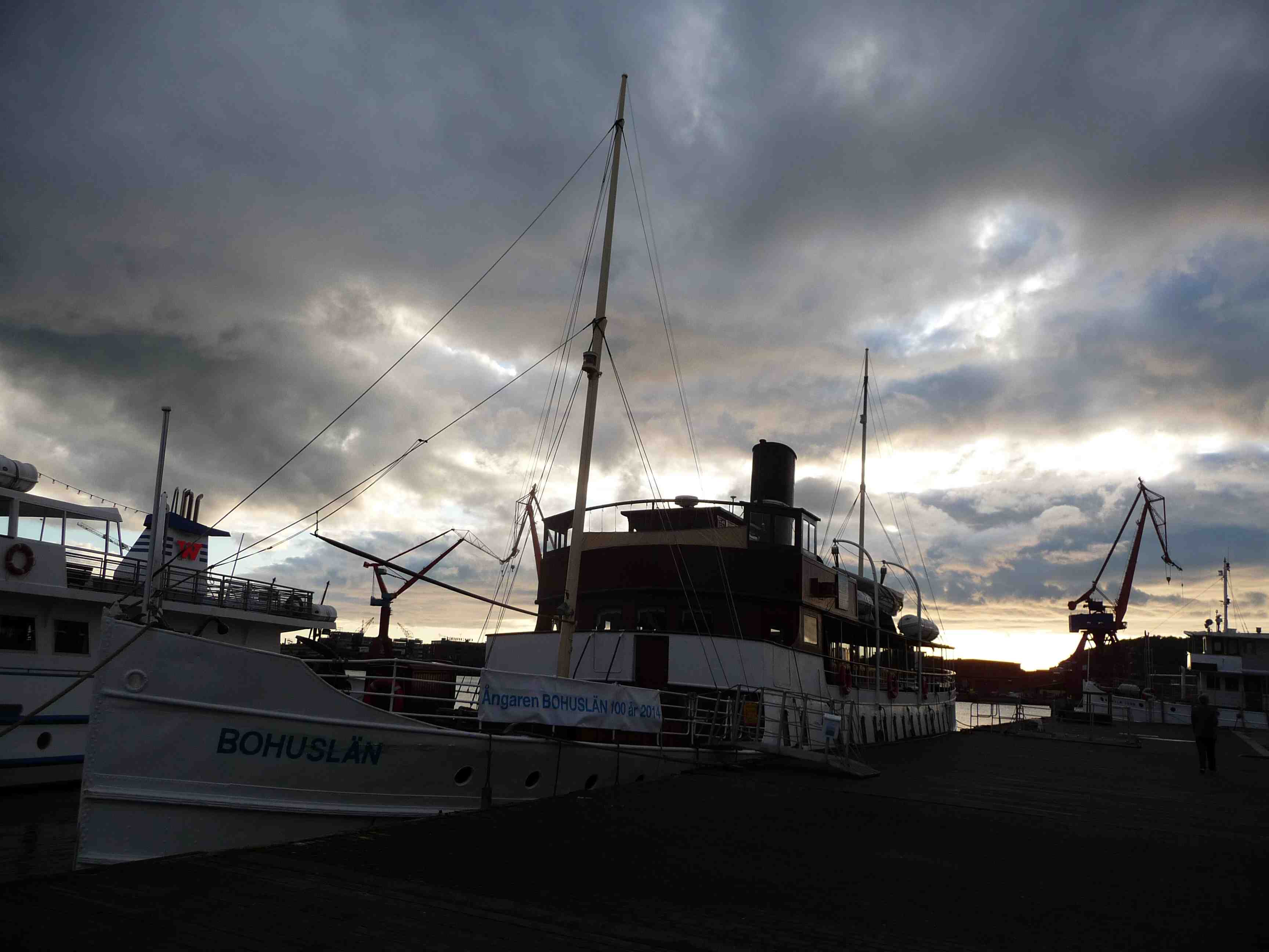 Ångaren Bohuslän firar 100-årsminnet av första provturen just i dag! Byggdes på Eriksbergs Mekaniska Verkstad, saligt i åminnelse. Levde 1850-1979. Walona till vänster och Wilhelm Tham till höger. Packhuskajen onsdag 14 maj 2014 kl 20:06.