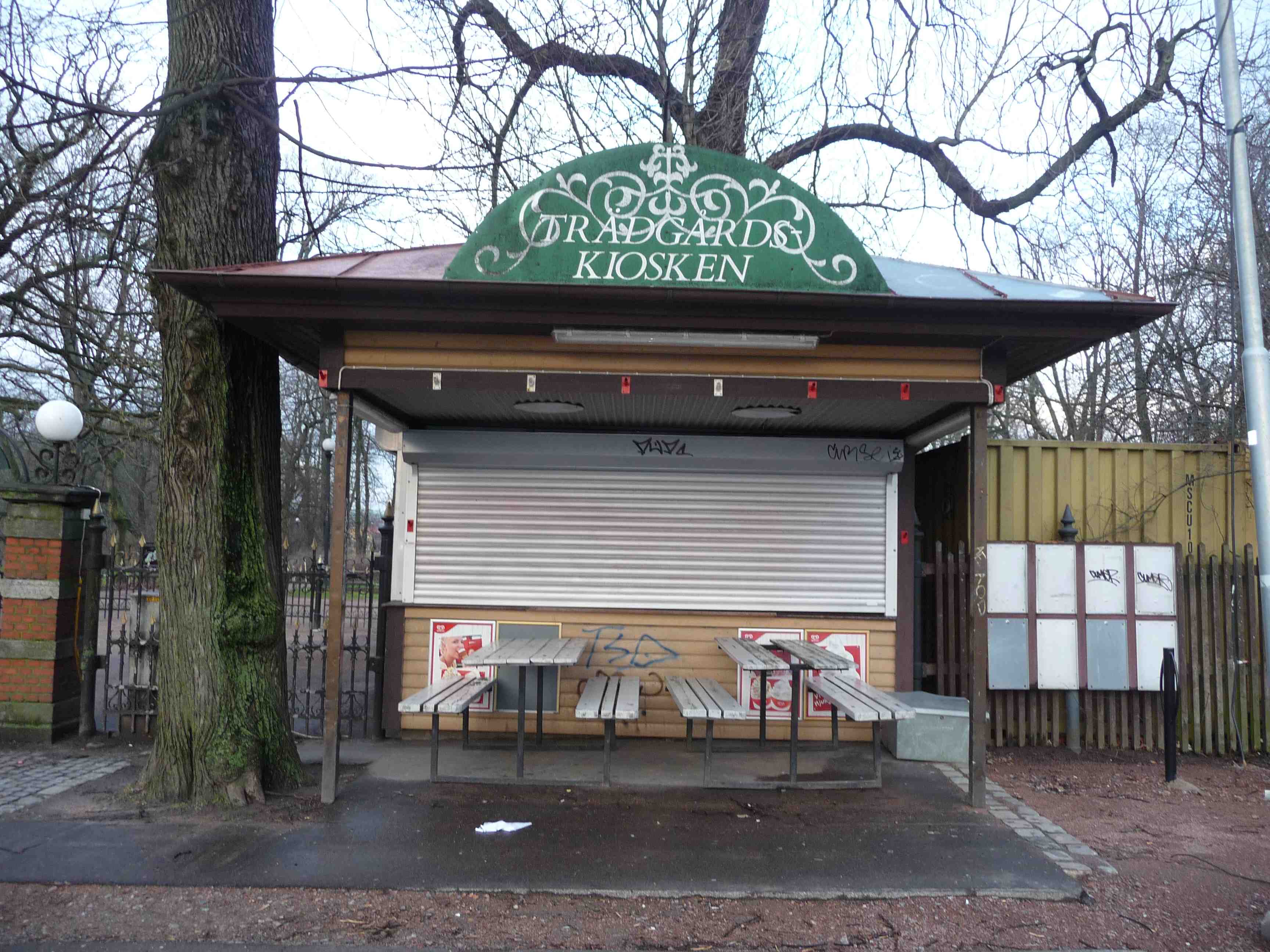 Trädgårdskiosken i träda sedan många månader. Gamla Allén vid Trädgårdsföreningen lördag 22 februari 2014 kl 16:38.