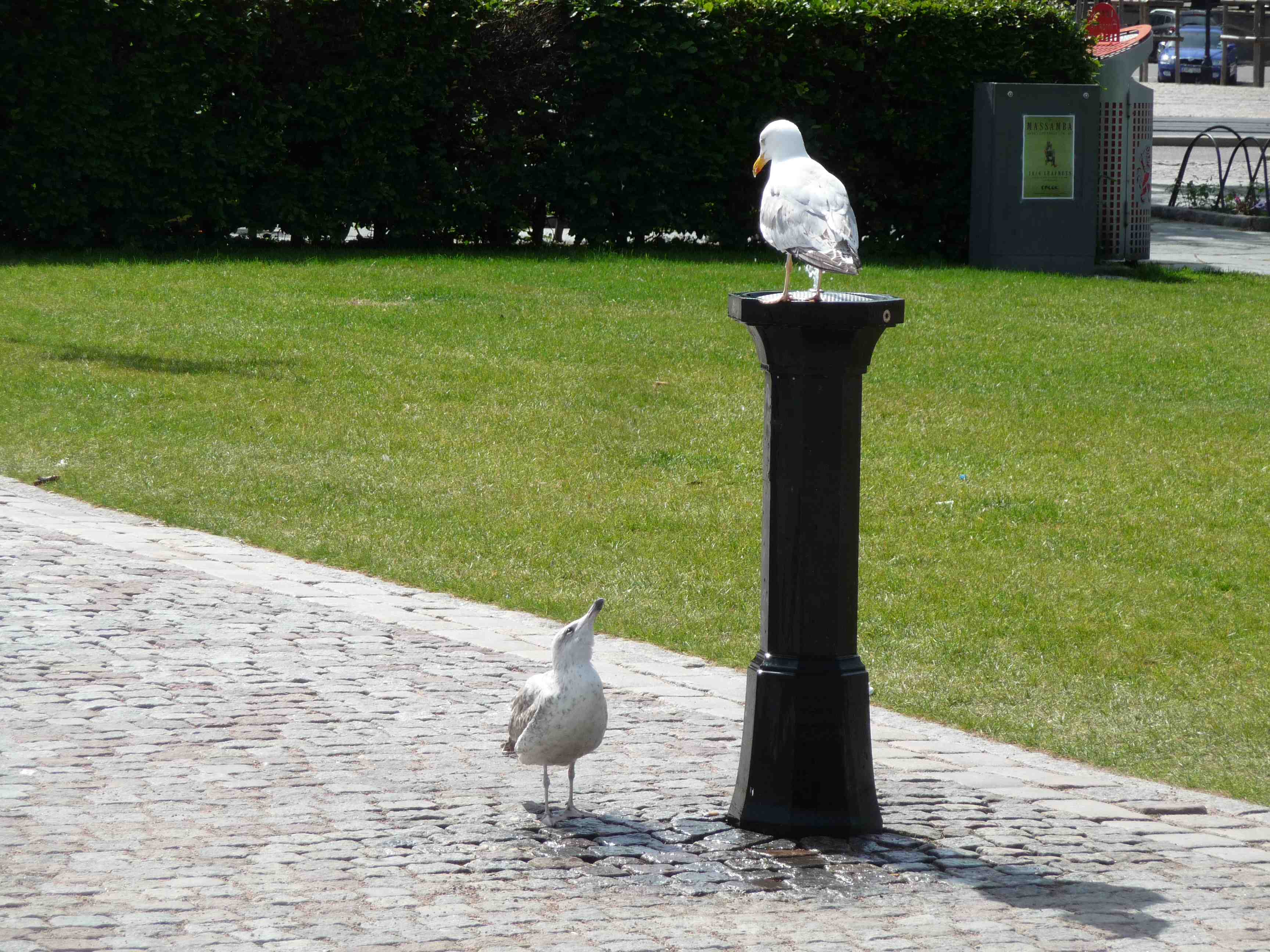 Herre på täppan. Trutar i viljornas kamp om dricksfontänen i Bältespännarparken. Tisdag 17 juni 2014 kl 15.08.