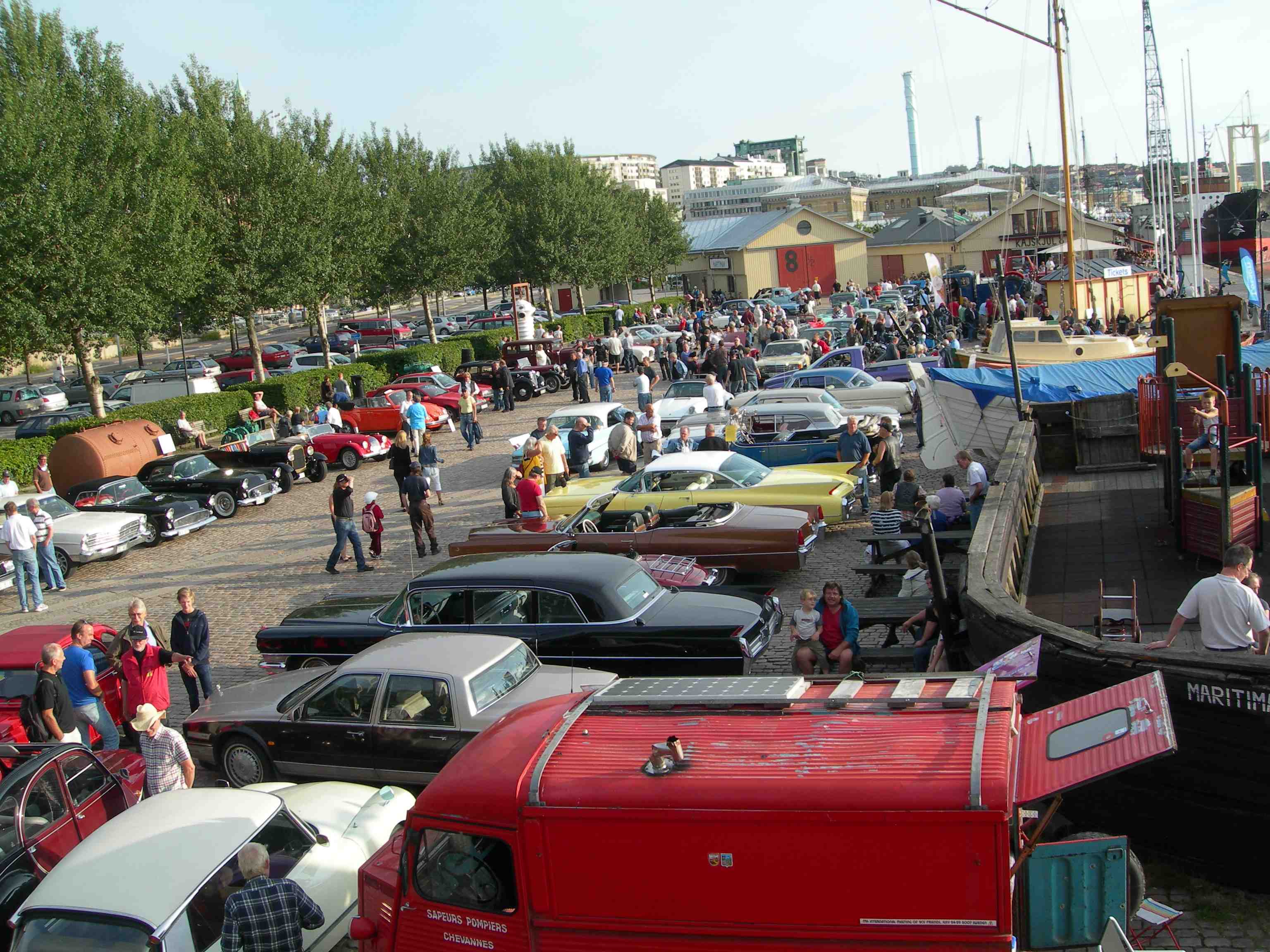 Veteranbilar vid Maritiman på Packhuskajen. Onsdag 20 juli 2011 kl 19.30.
