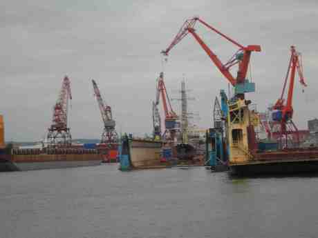 Barken Gunilla i Götaverken Cityvarvets lilla flytdocka. Måndag 4 juli 2011 kl 19.15.