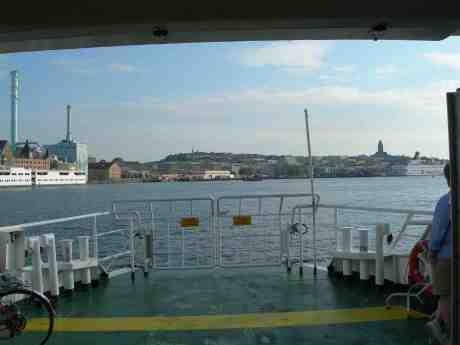 Älv-Vira mot tillfälliga angöringsplatsen vid Skeppsbrokajen. Onsdag 13 juli 2011 kl 14.43.