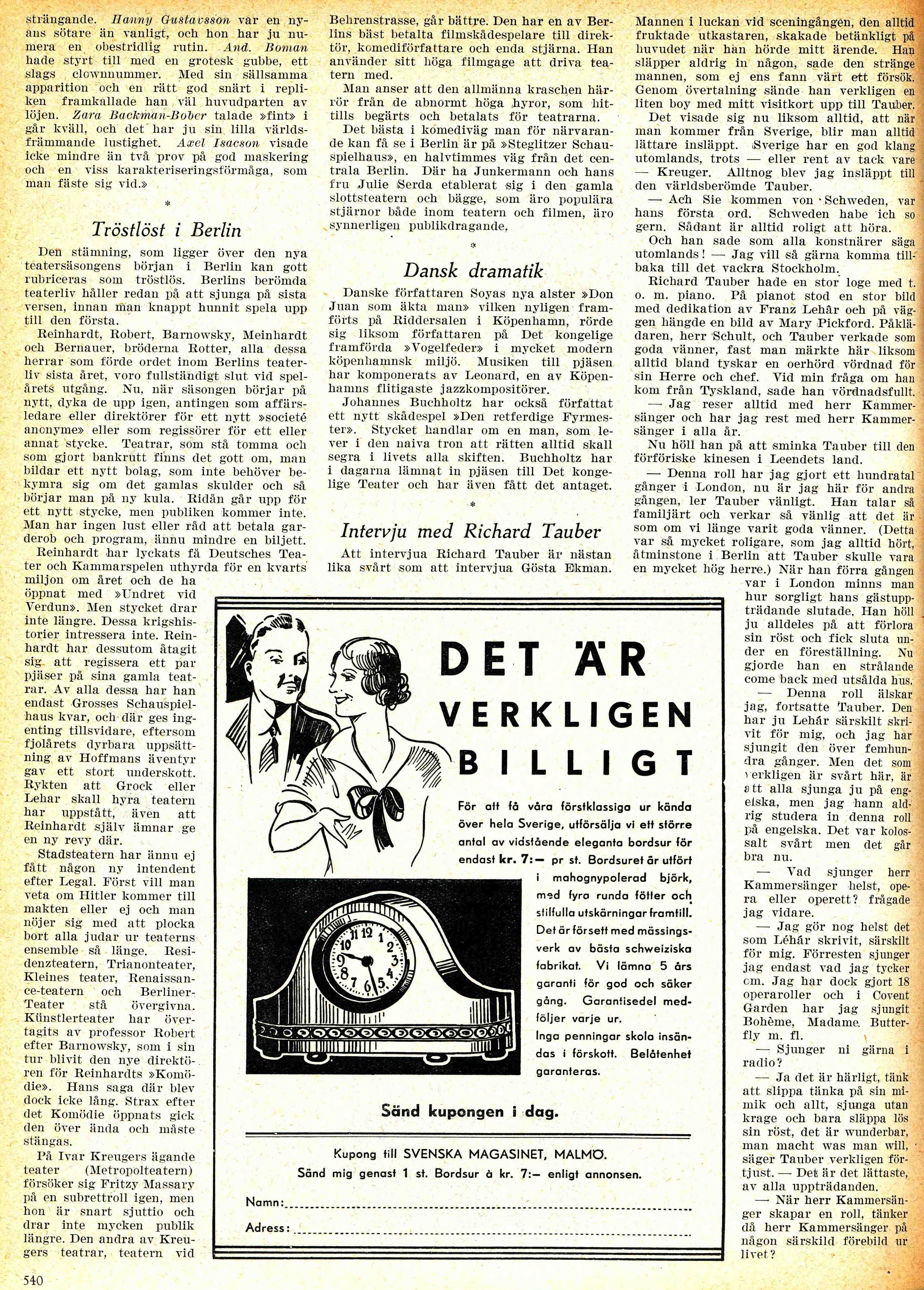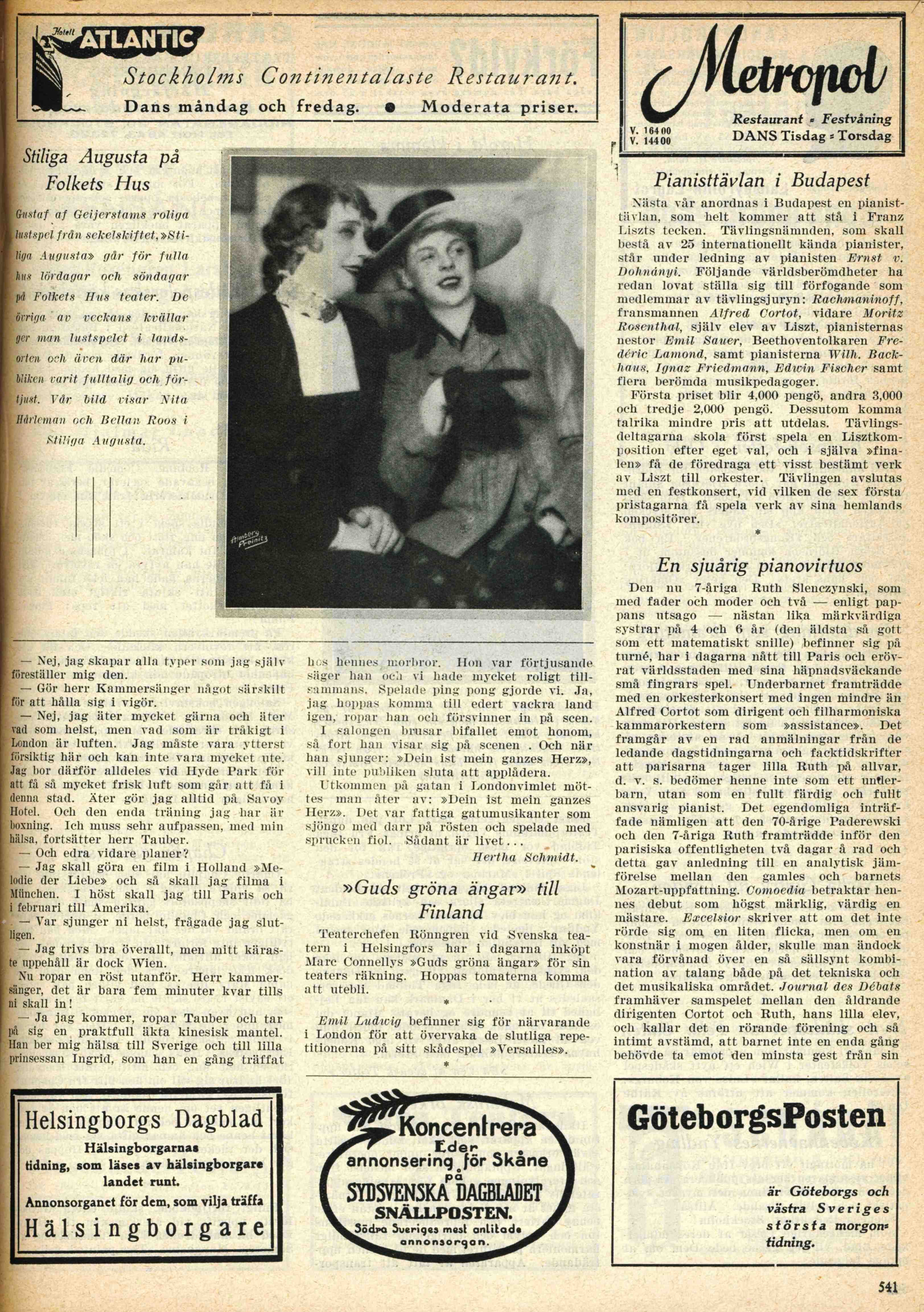 Hertha skrev mycket om skådespelare och sport. Här följer tre artklar från Scenen 1932.