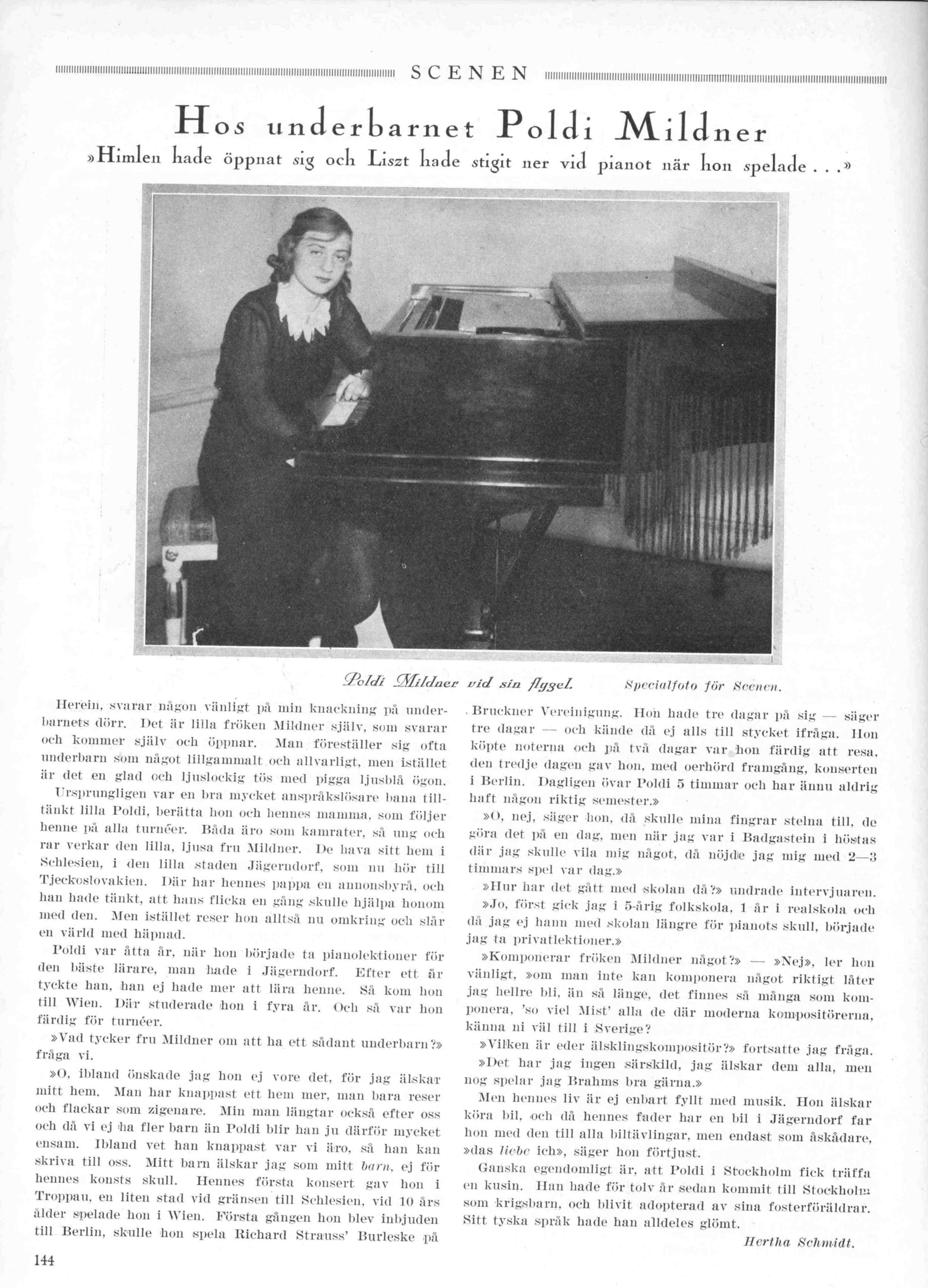 Hertha Schmidt, 10 april 1897–21 maj 1985, föddes i Tyskland och kom som liten till Sverige med sina föräldrar Amalia Sophie Anna, f. Süß, 3 april 1871–22 oktober 1959, och Martin Max, död 1945.