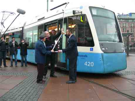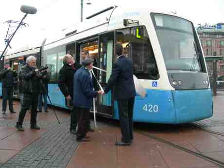 Harry Persson inviger sin spårvagn på Drottningtorget klockan 12 onsdagen 21 december 2011.