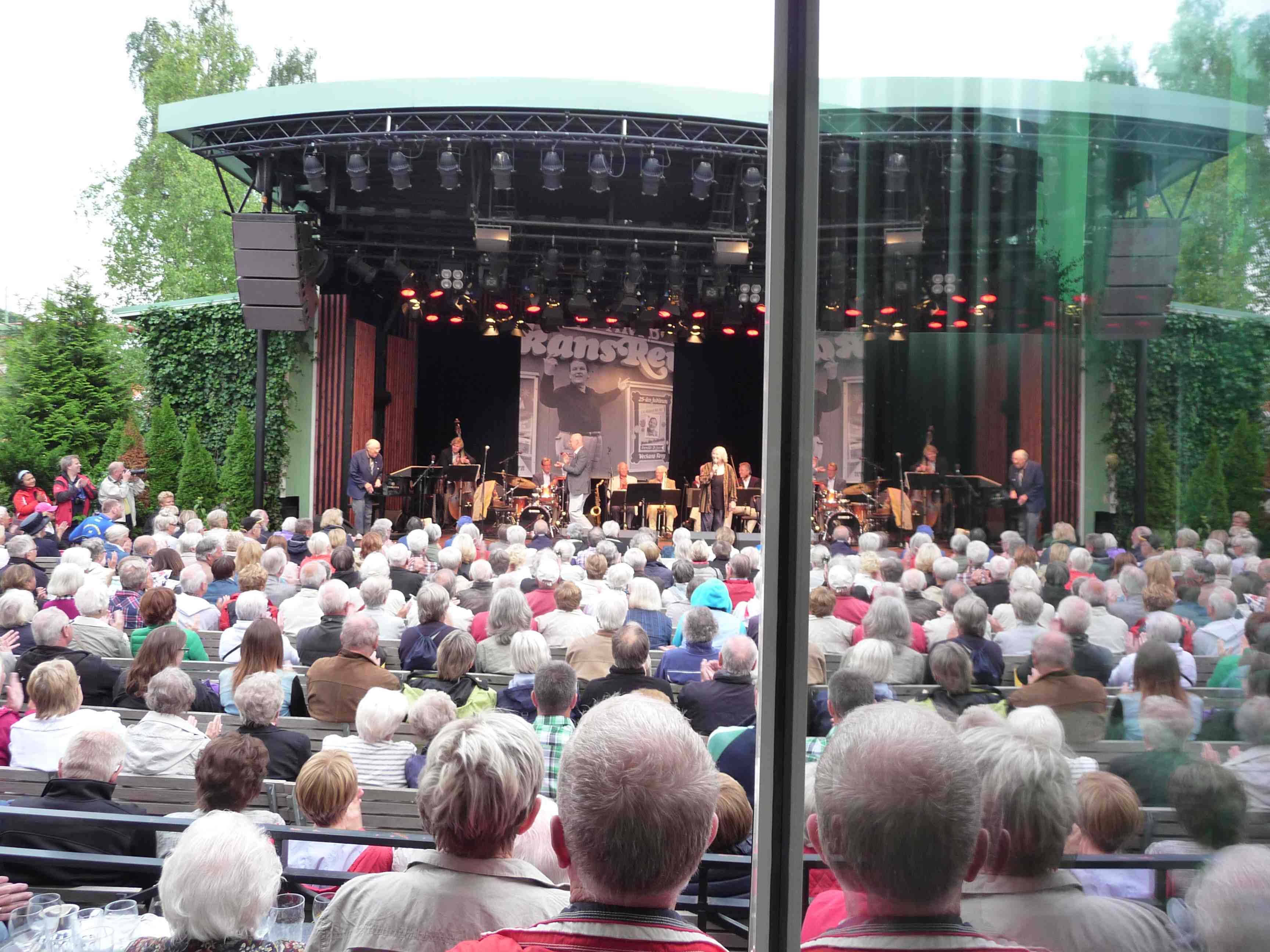 Harry Persson har just ackompanjerat sin fru Marianne under en artist- och publikrik hyllning till Sten-Åke Cederhök som skulle fyllt 100 i år. Taubescenen på Liseberg tisdag 25 juni 2013 kl 19:39.