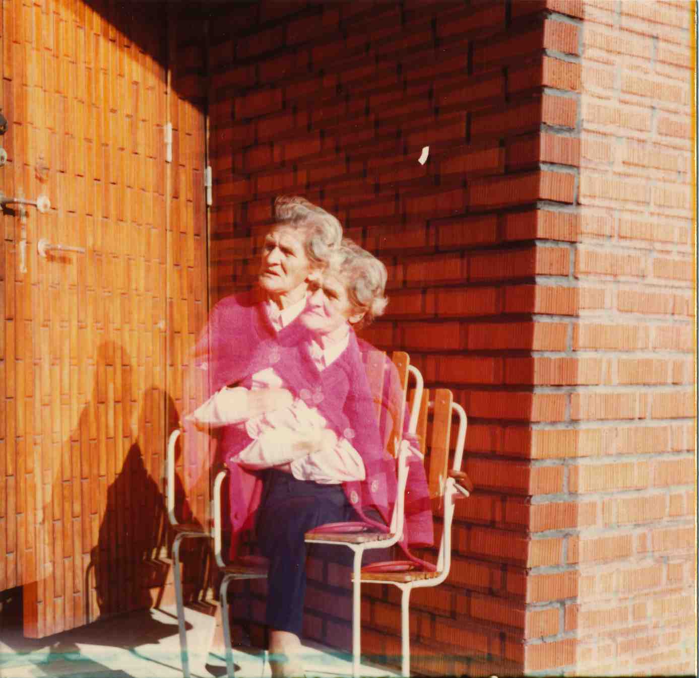 Artistiskt foto. Två bilder i en på Gerda. Det är naturligtvis jag som misslyckats, men Gerda är bra. Snygg och fin i figuren, hade ofta långbyxor.